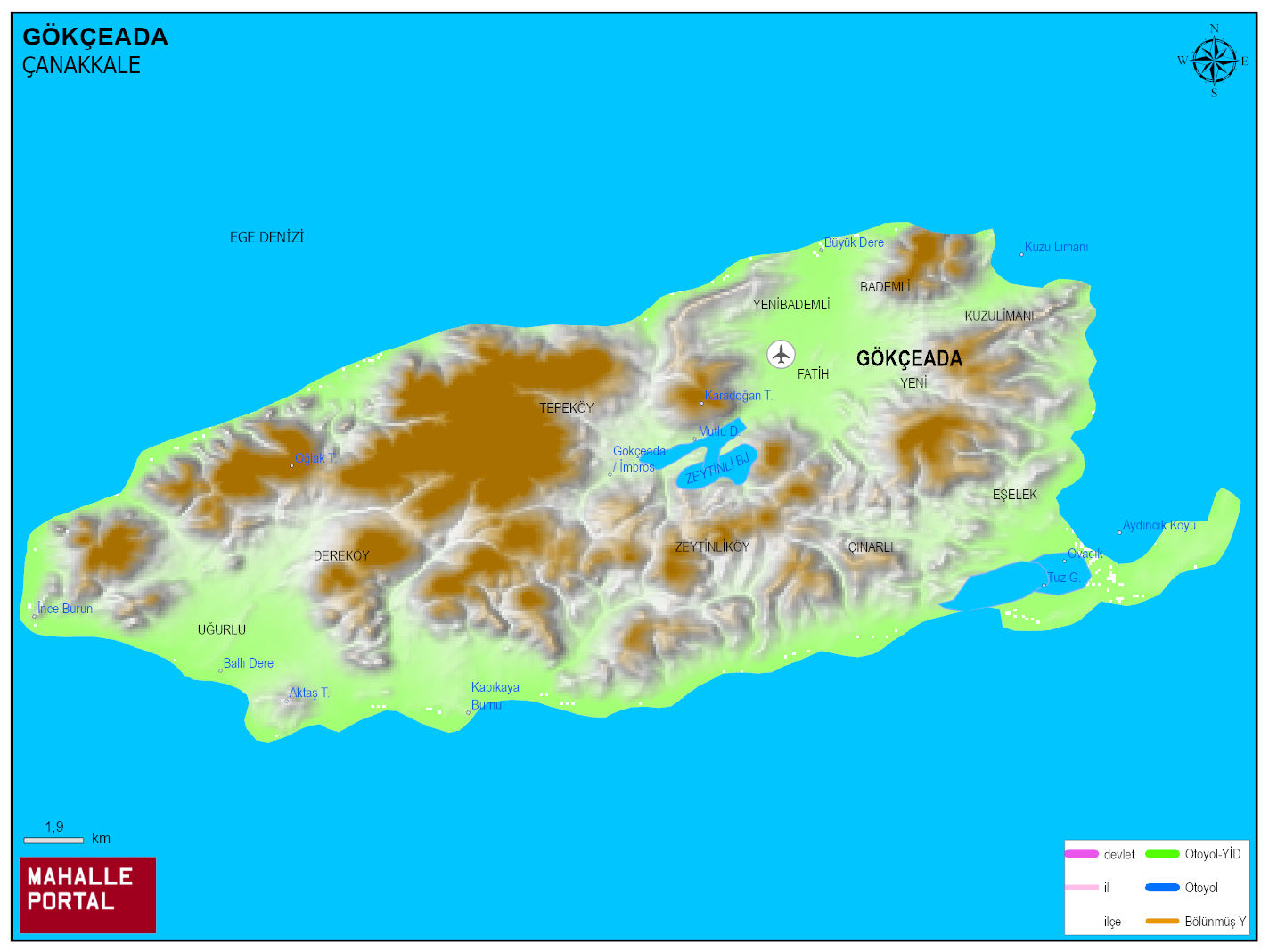 GÖKÇEADA Physical Map | Mountains, Rivers and Elevation Details