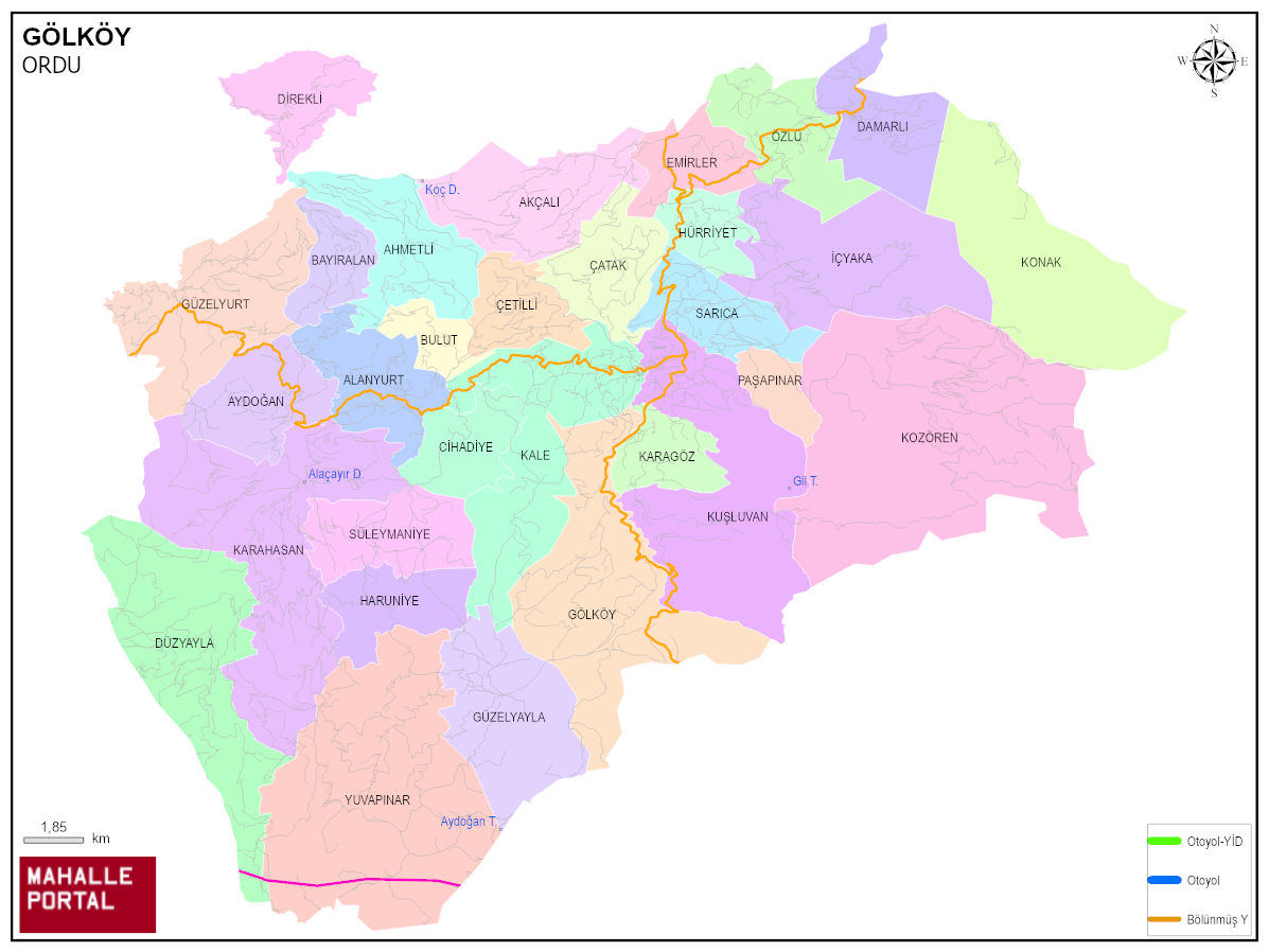 GÖLKÖY Neighbourhood Map | Boundaries of District Villages