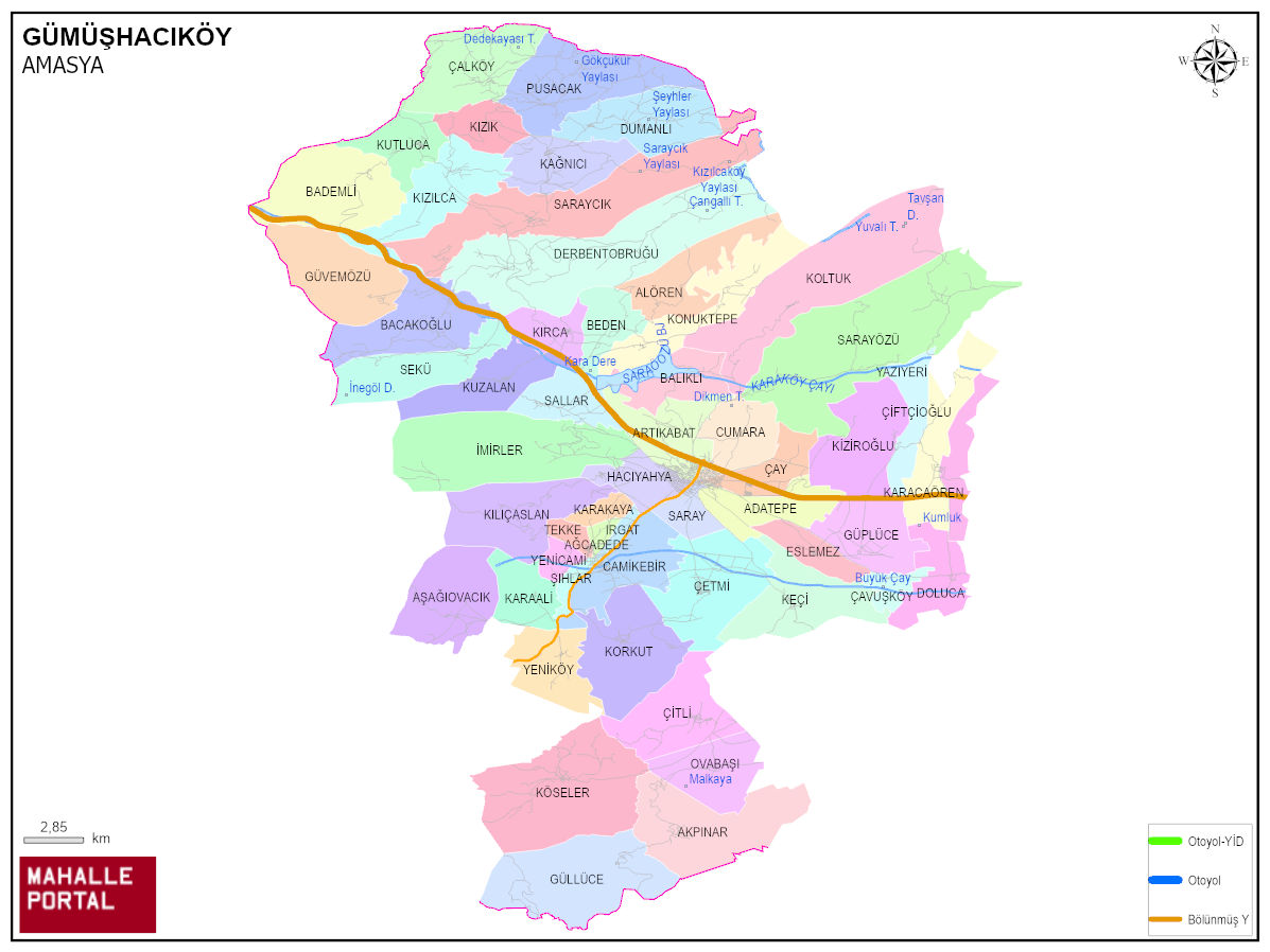 GÜMÜSHACIKÖY Neighbourhood Map | Boundaries of District Villages