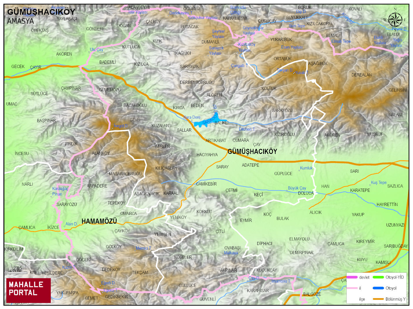 GÜMÜSHACIKÖY, AMASYA Digital Map | Interactive District and Neighbourhoods