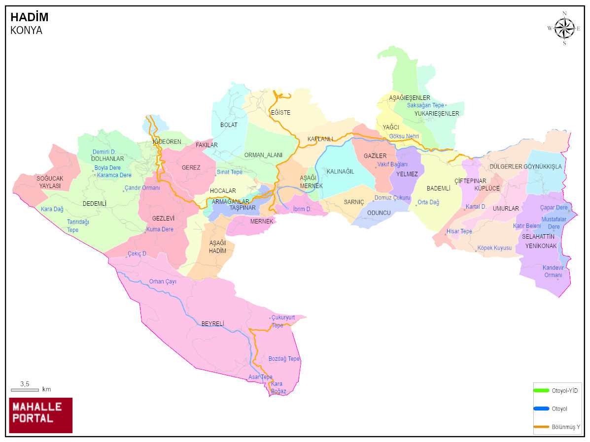 HADIM, KONYA Digital Map | Satellite View and Local Boundaries