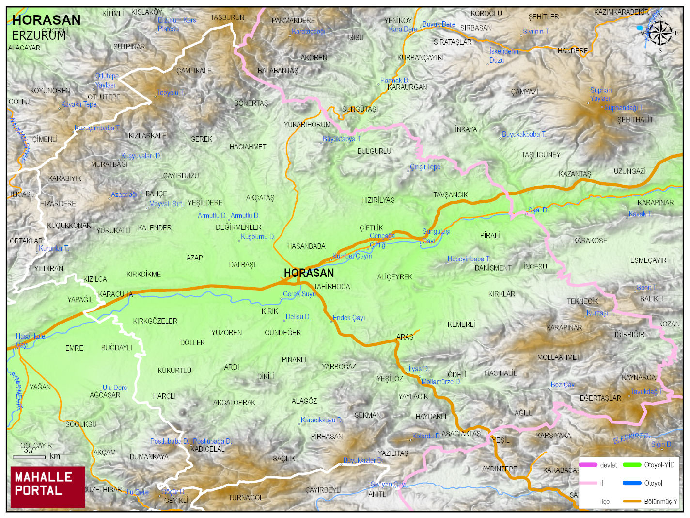 HORASAN, ERZURUM Digital Map | Satellite View and Local Boundaries