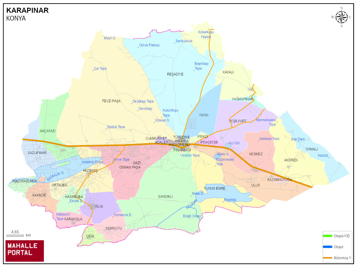 KARAPINAR Neighbourhood Map | Detailed Villages and Neighbourhoods