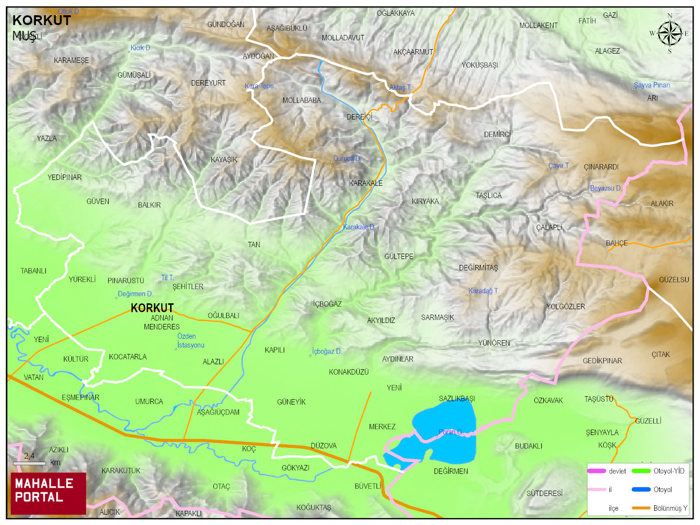 KORKUT, MUS Digital Map | Satellite View and Local Boundaries