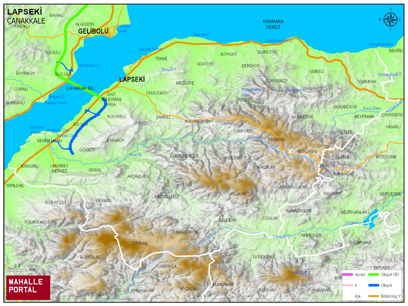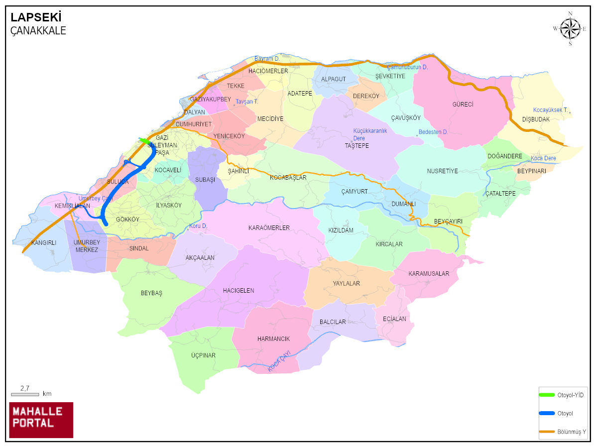 LAPSEKI Neighbourhood Map | Detailed Villages and Neighbourhoods