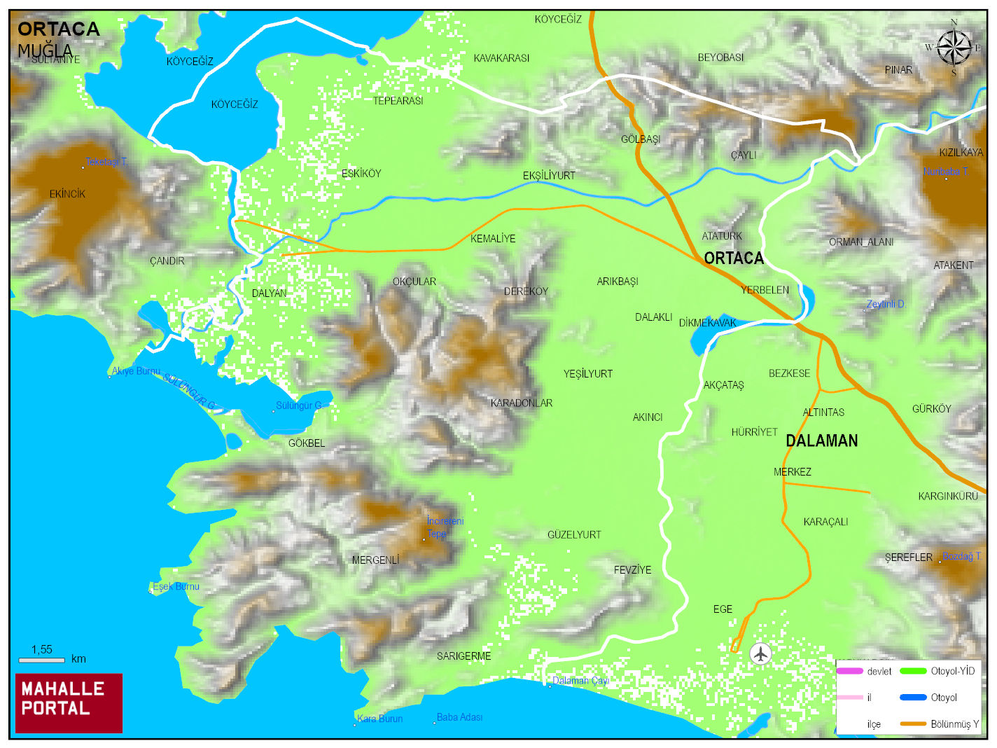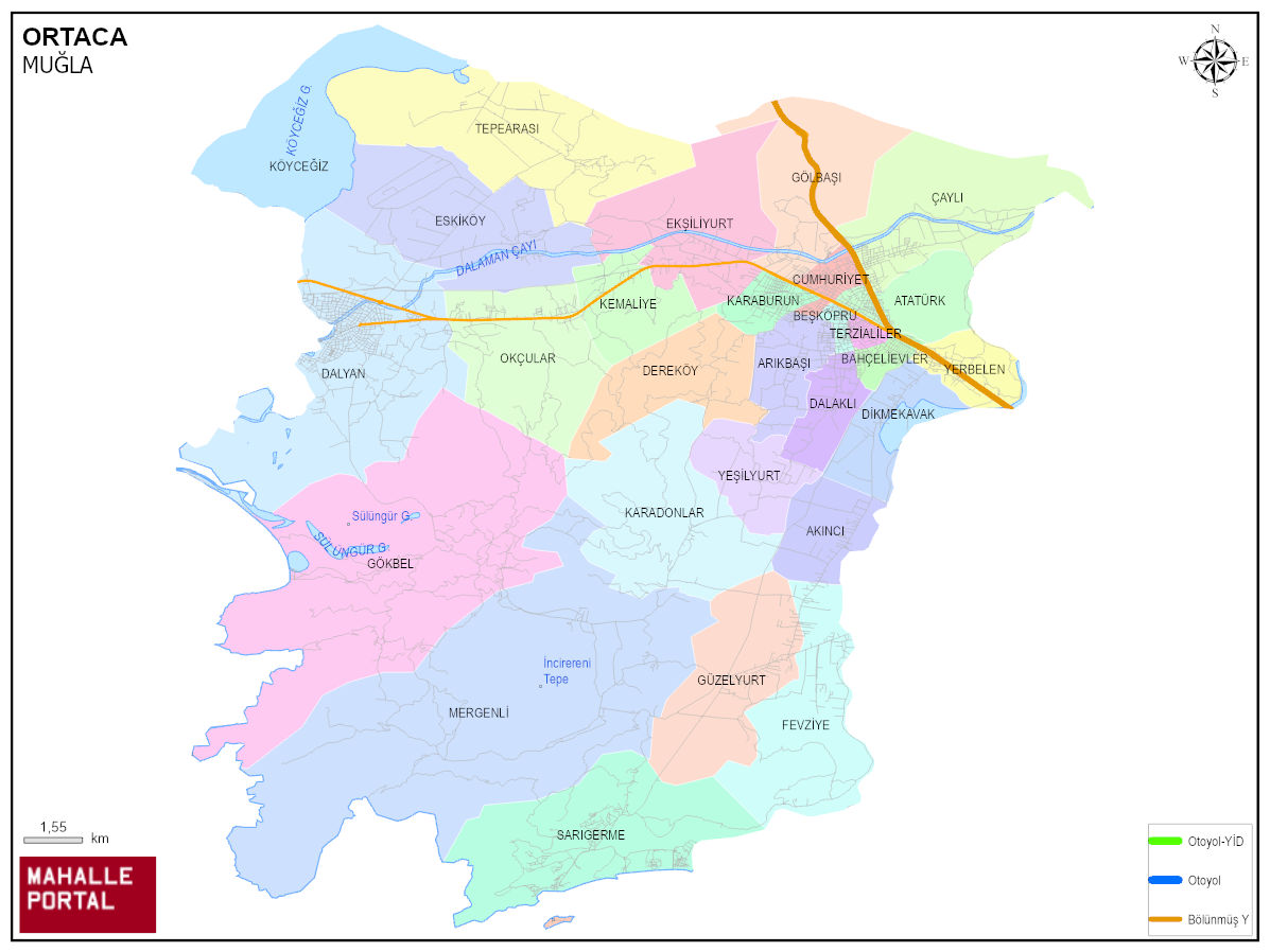 ORTACA, MUGLA Digital Map | Updated District and Neighbourhood Map