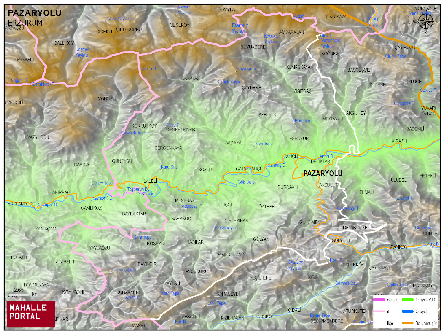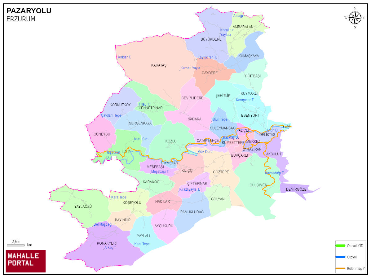 PAZARYOLU, ERZURUM Digital Map | Updated District and Neighbourhood Map