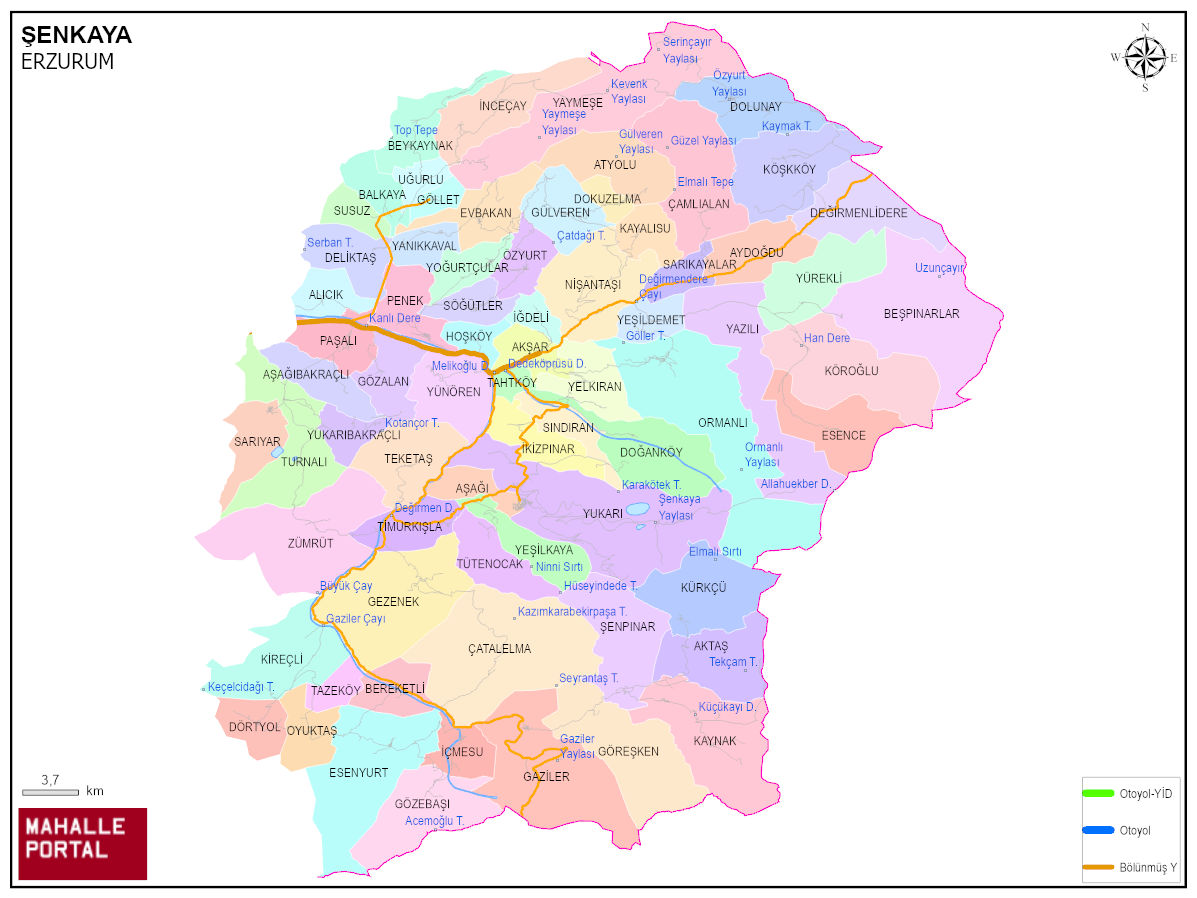 SENKAYA, ERZURUM Digital Map | Updated District and Neighbourhood Map