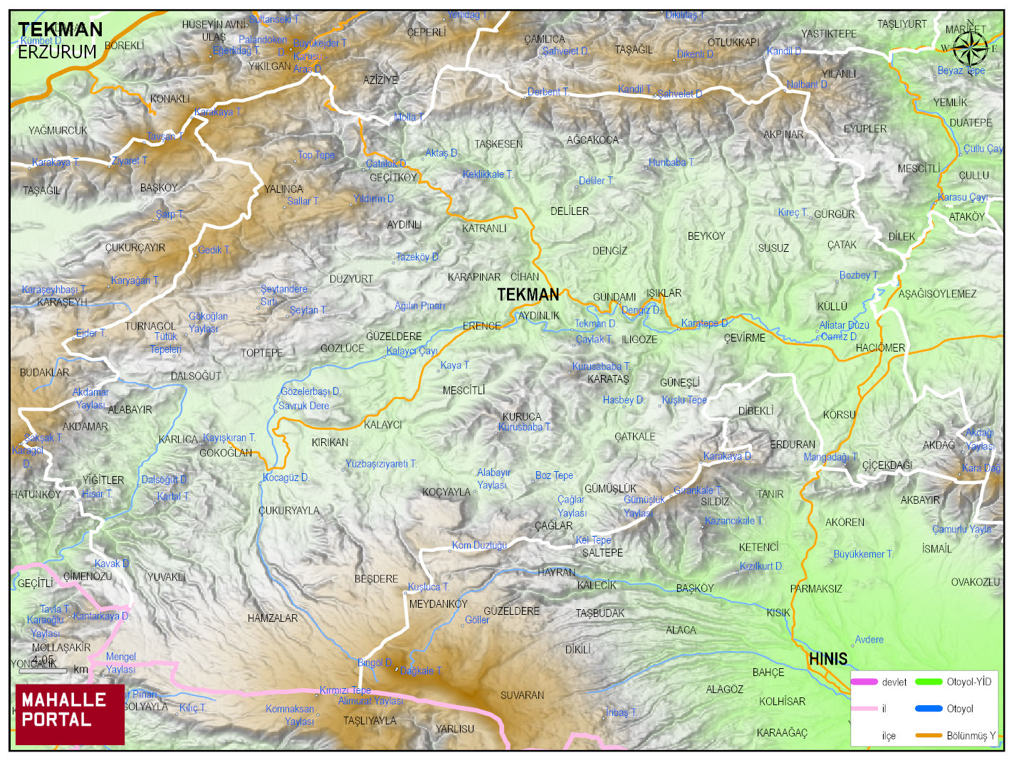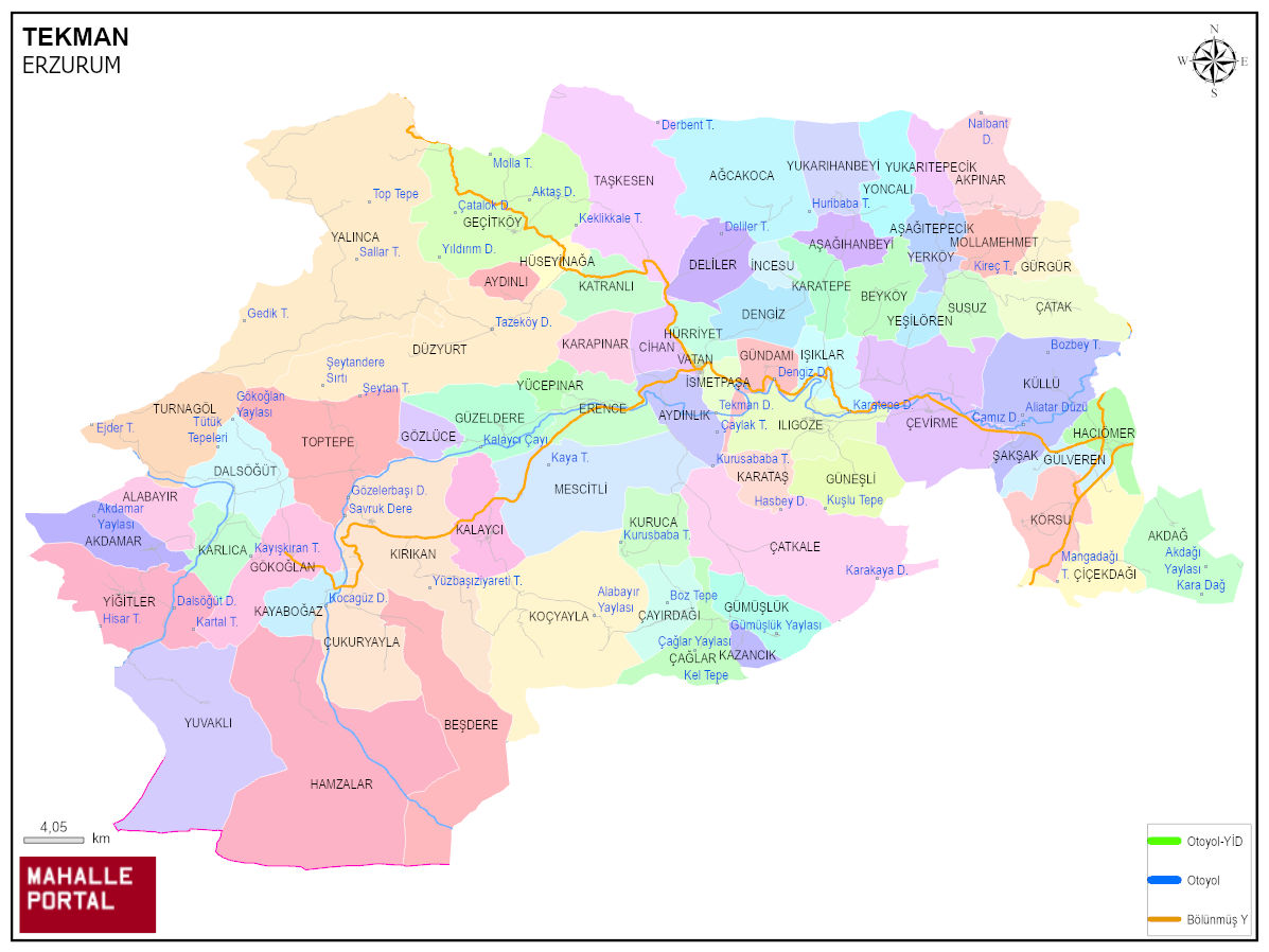 TEKMAN, ERZURUM Digital Map | Updated District and Neighbourhood Map