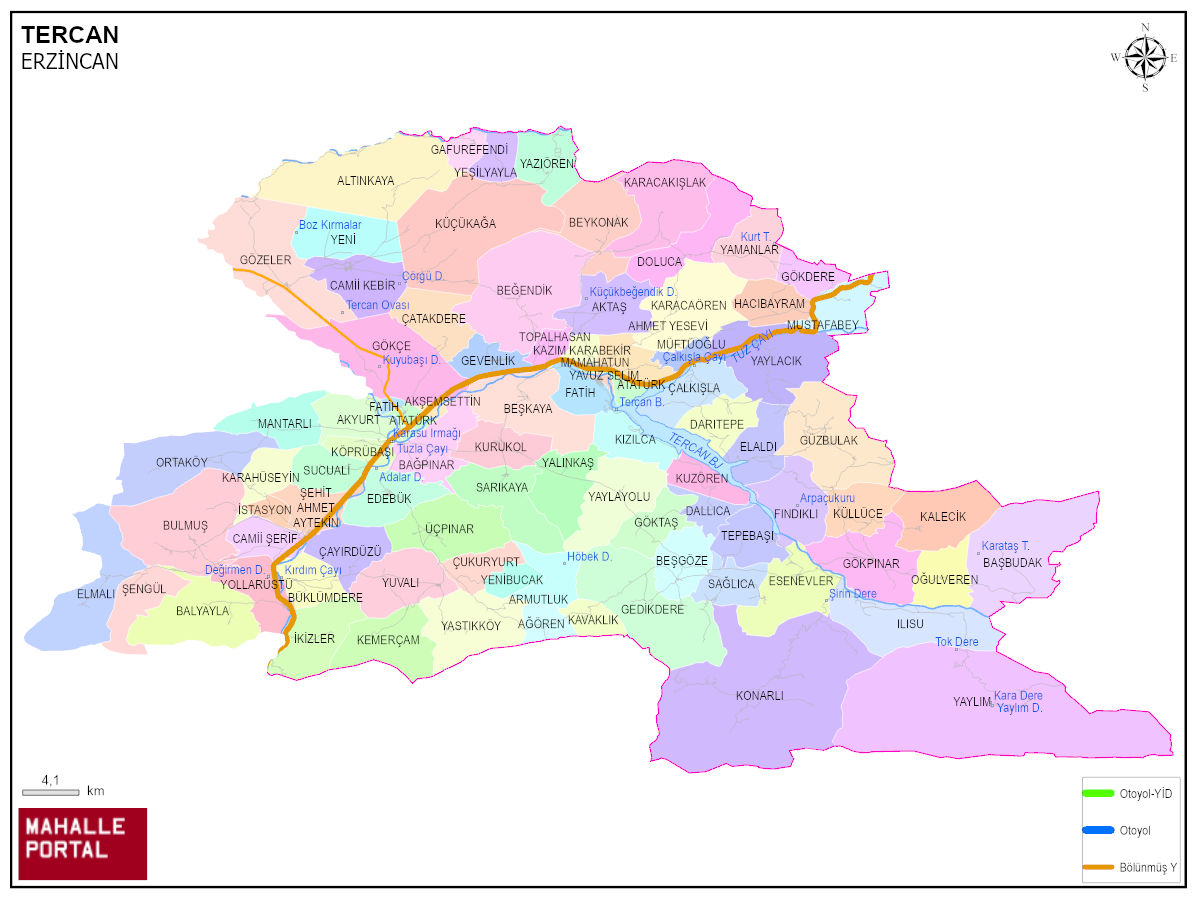 TERCAN, ERZINCAN Digital Map | Updated District and Neighbourhood Map
