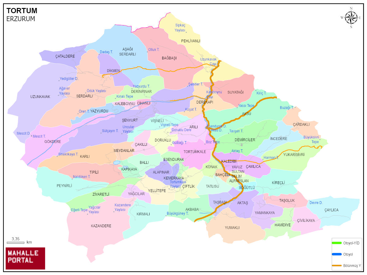 TORTUM, ERZURUM Digital Map | Updated District and Neighbourhood Map