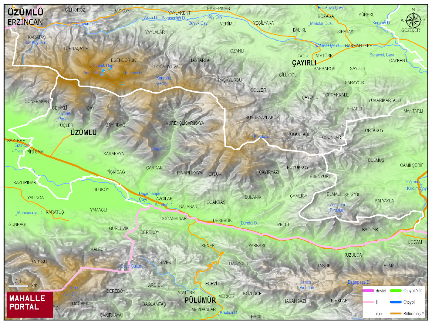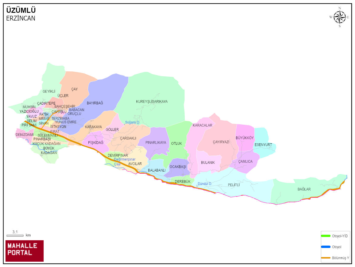ÜZÜMLÜ, ERZINCAN Digital Map | Updated District and Neighbourhood Map