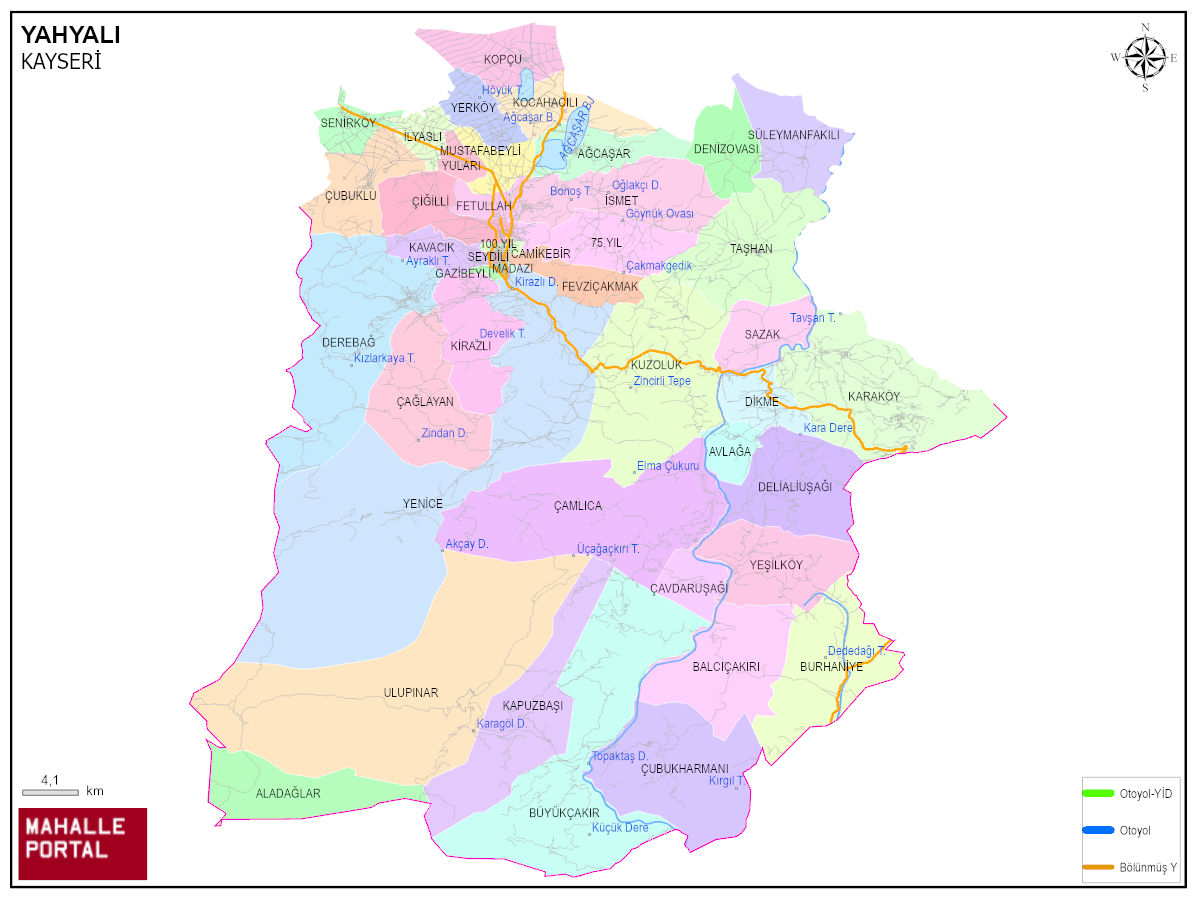 YAHYALI, KAYSERI Digital Map | Updated District and Neighbourhood Map