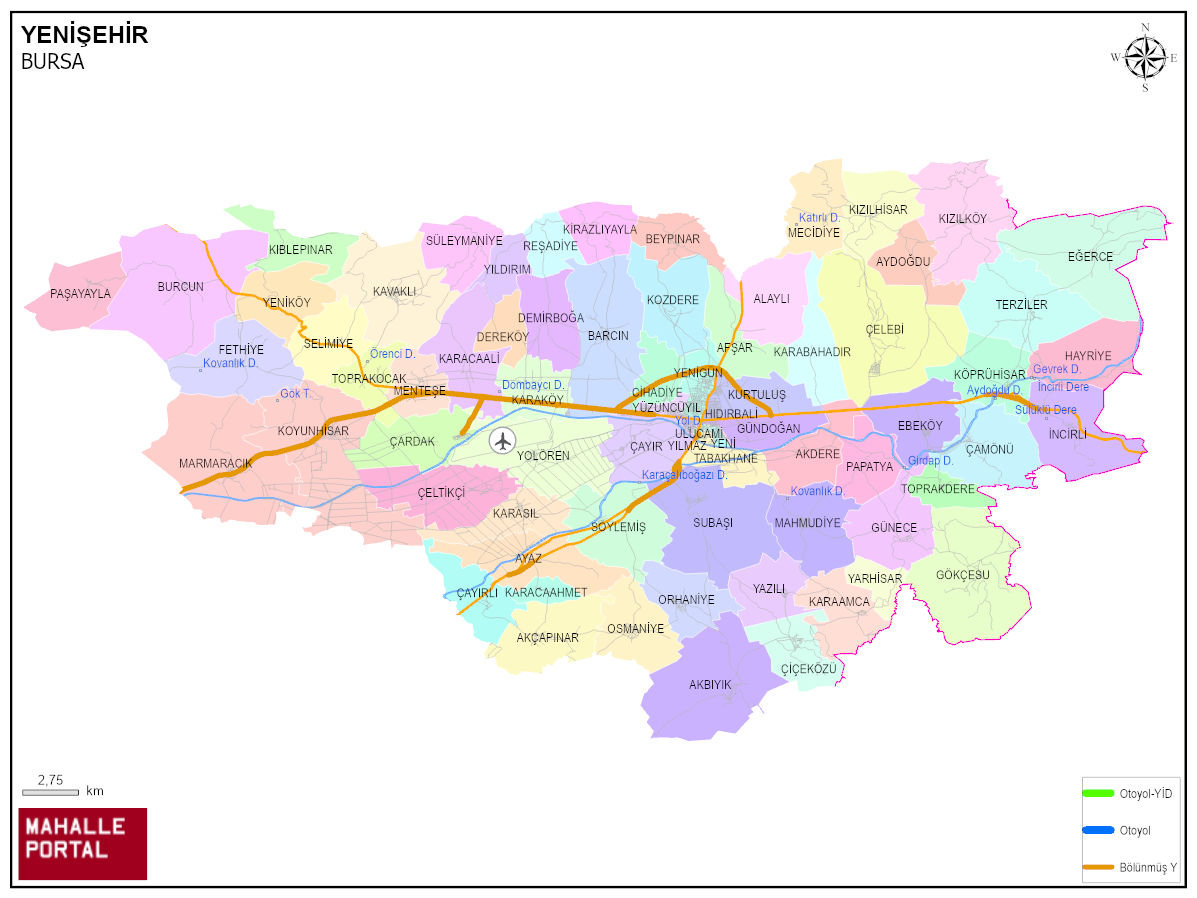 YENISEHIR Neighbourhood Map | All Neighbourhoods and Settlements