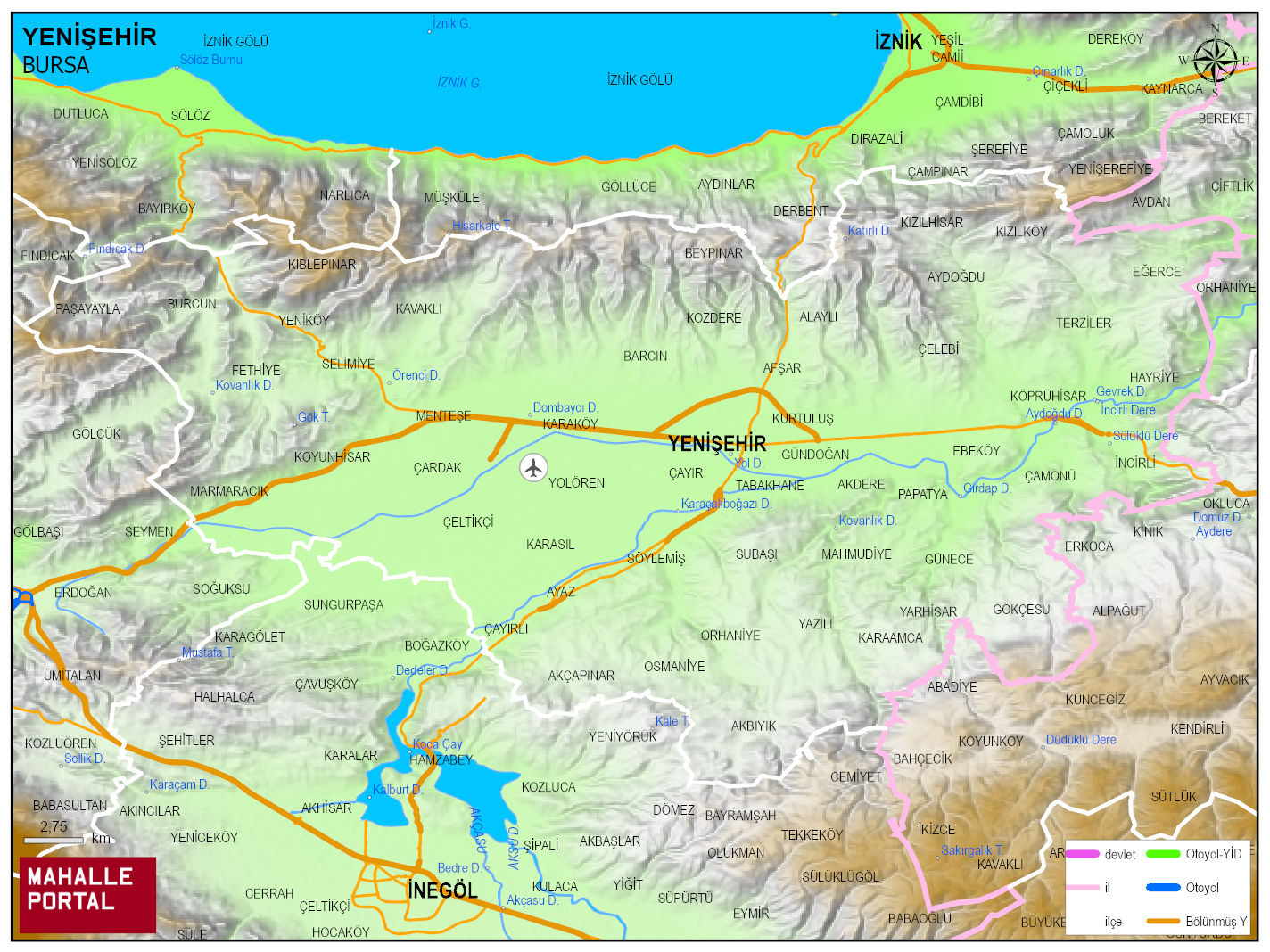 YENISEHIR, BURSA Digital Map | Updated District and Neighbourhood Map