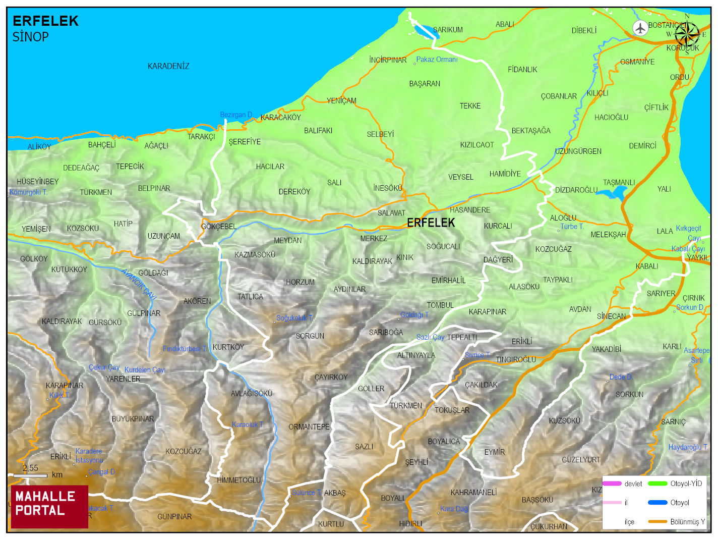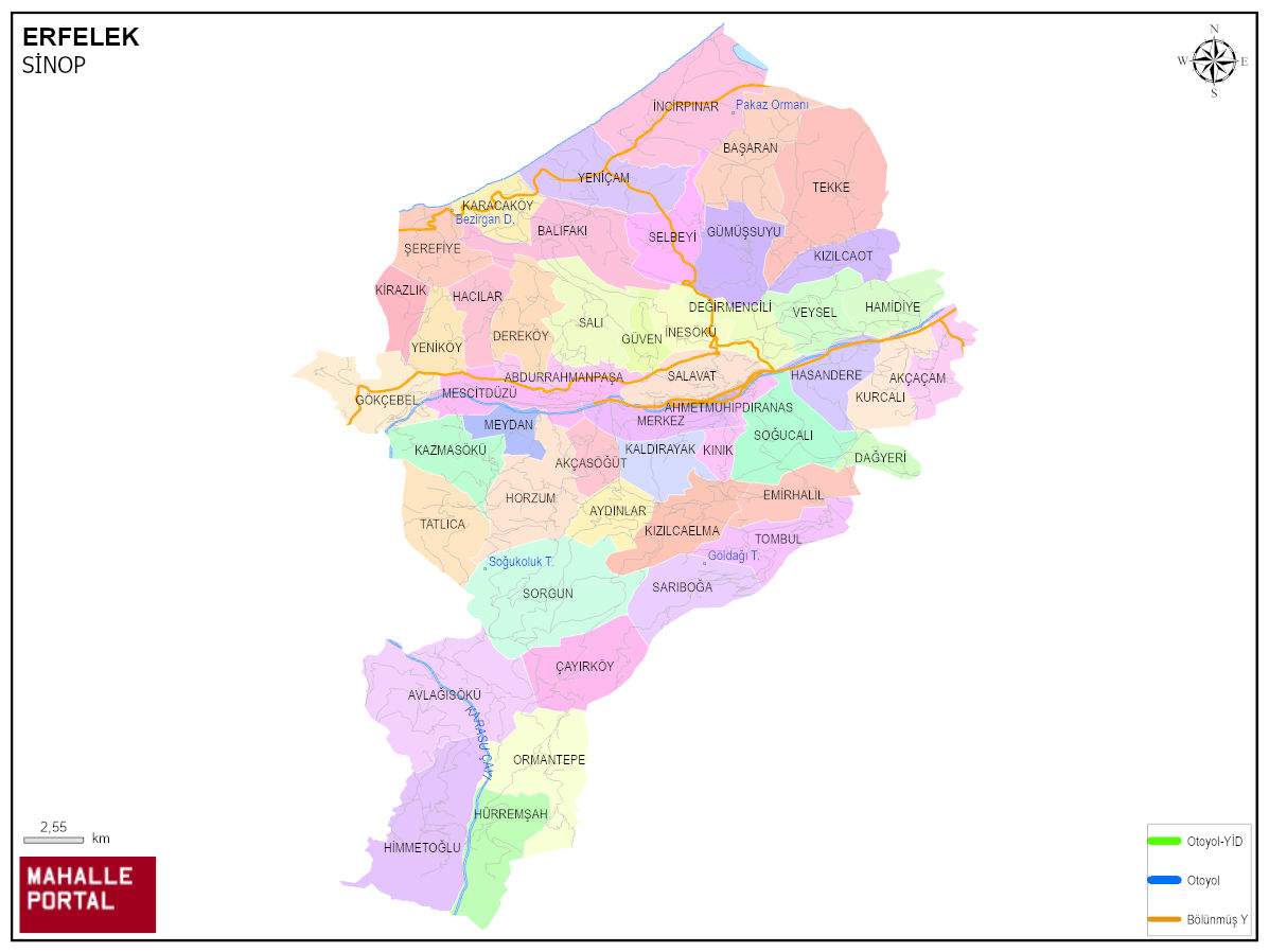 ERFELEK, SİNOP Dijital Haritası | İnteraktif İlçe ve Mahalle Sınırları