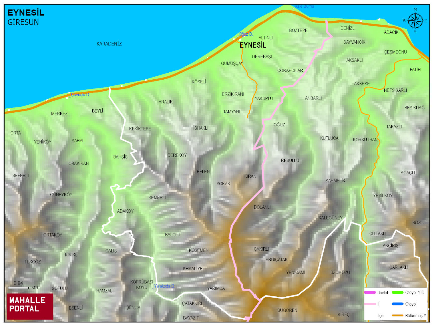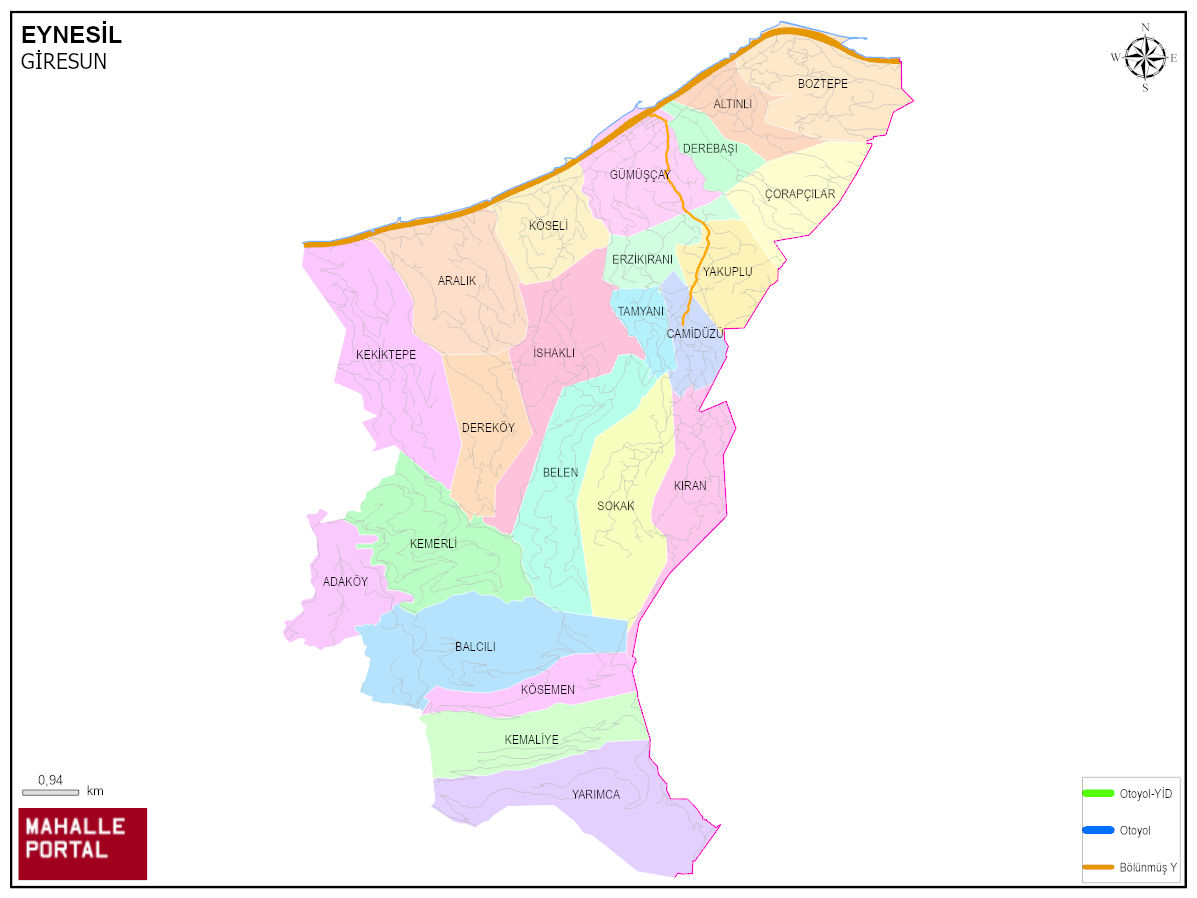 EYNESİL, GİRESUN Dijital Haritası | İnteraktif İlçe ve Mahalle Sınırları