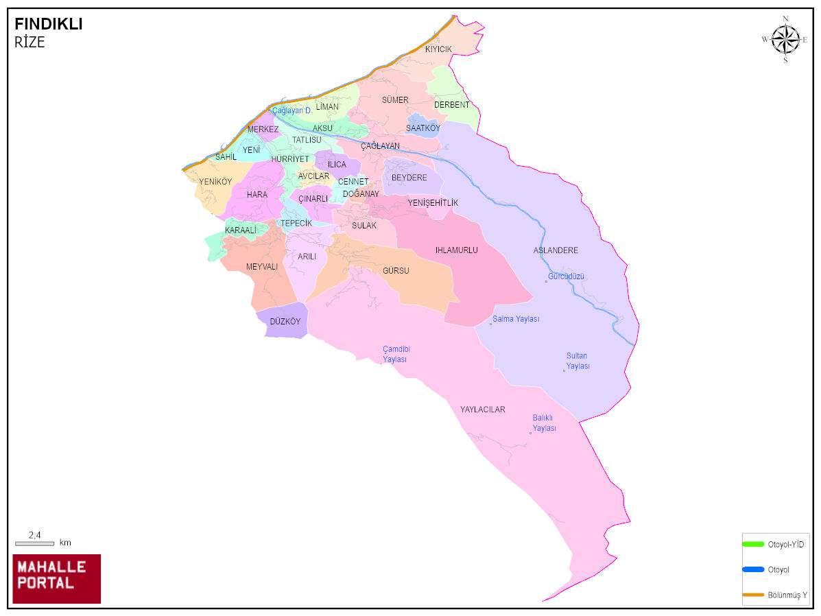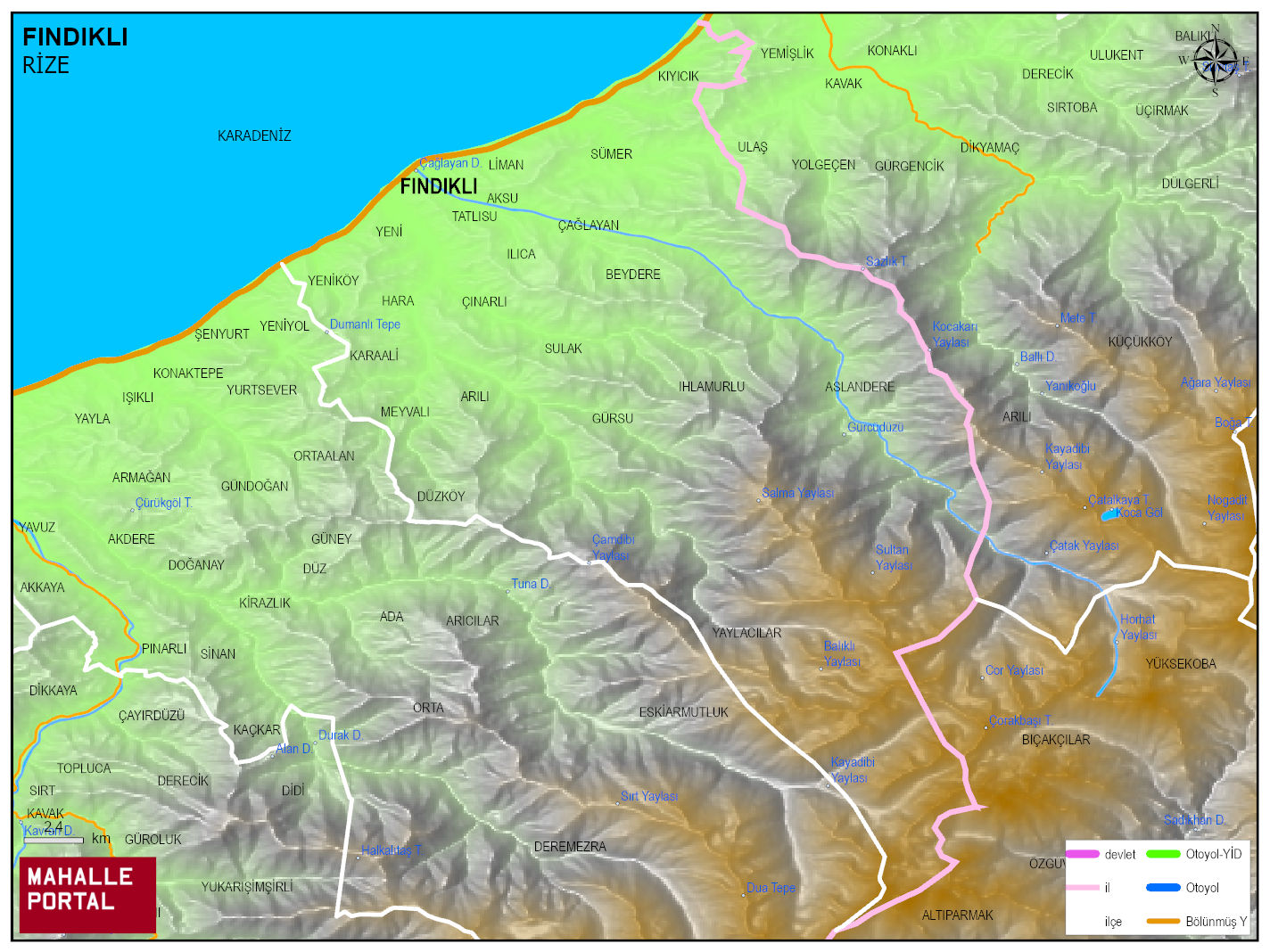 FINDIKLI, RİZE Dijital Haritası | İnteraktif İlçe ve Mahalle Sınırları
