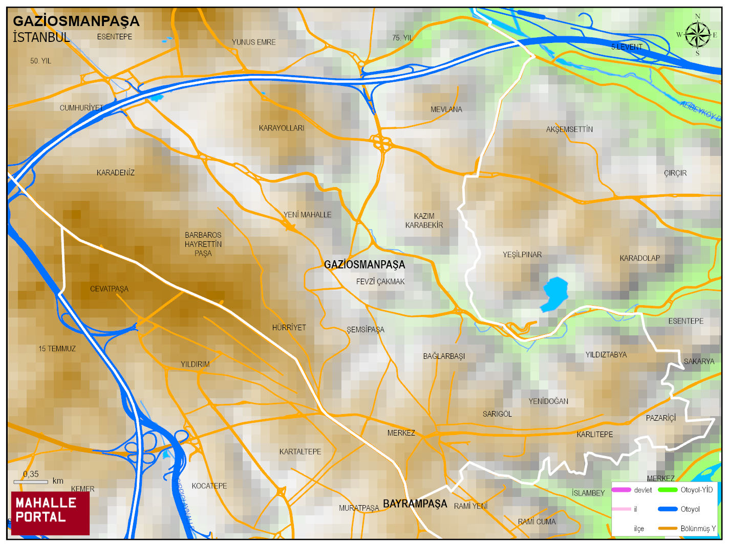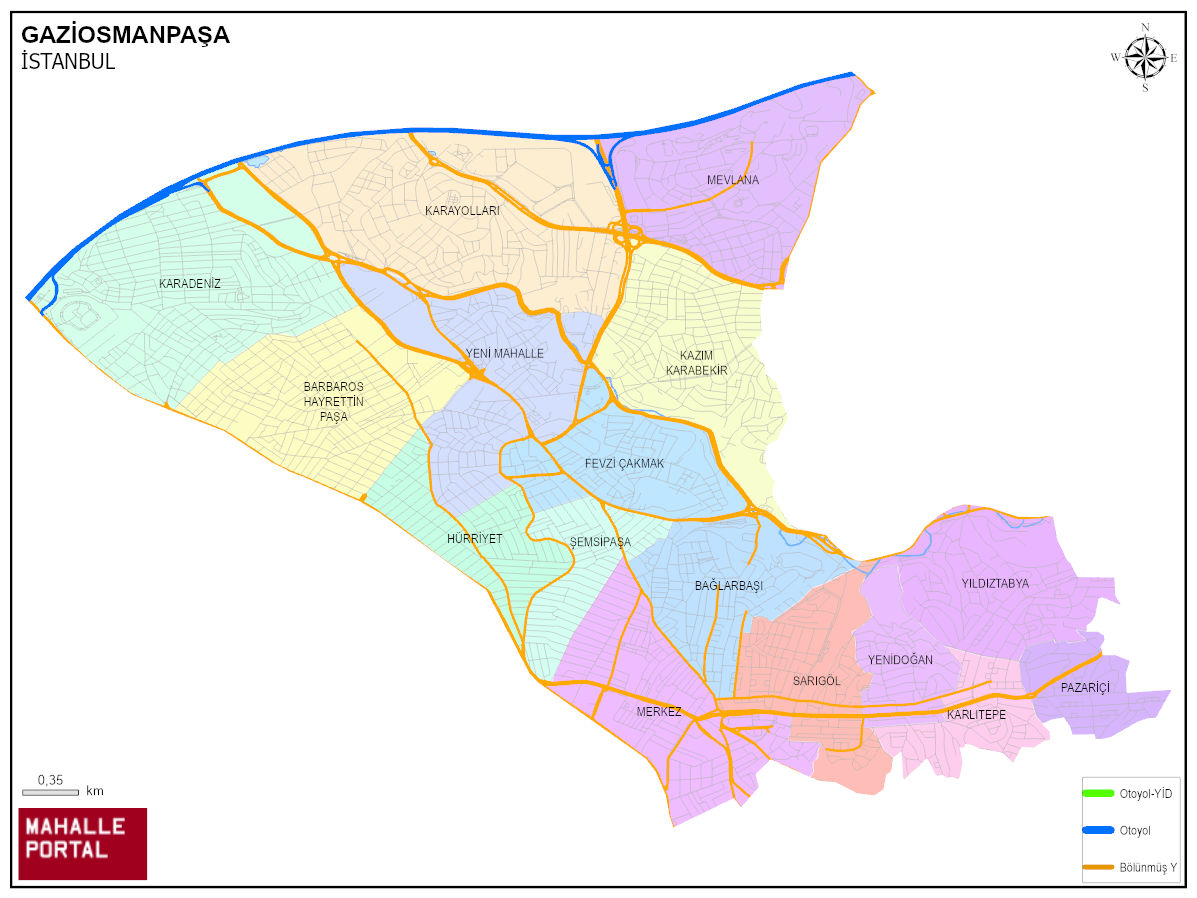 GAZİOSMANPAŞA, İSTANBUL Dijital Haritası | İnteraktif İlçe ve Mahalle Sınırları
