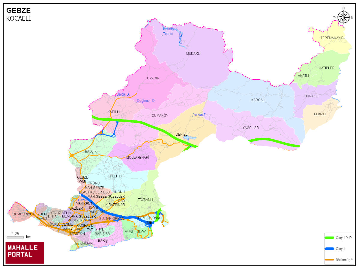 GEBZE Mahalle Köy Haritası | İlçe Mahalleleri ve Köy Sınırları