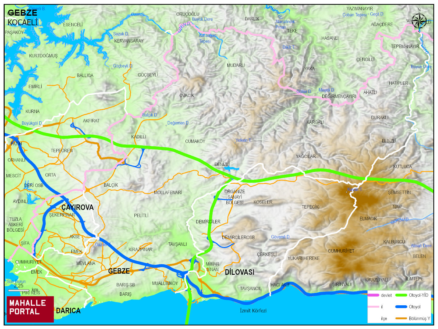 GEBZE Fiziki Haritası | Dağlar, Ovalar ve Akarsu Bilgileri