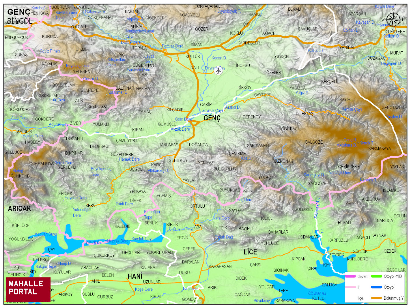 GENÇ Fiziki Haritası | Dağlar, Ovalar ve Akarsu Bilgileri