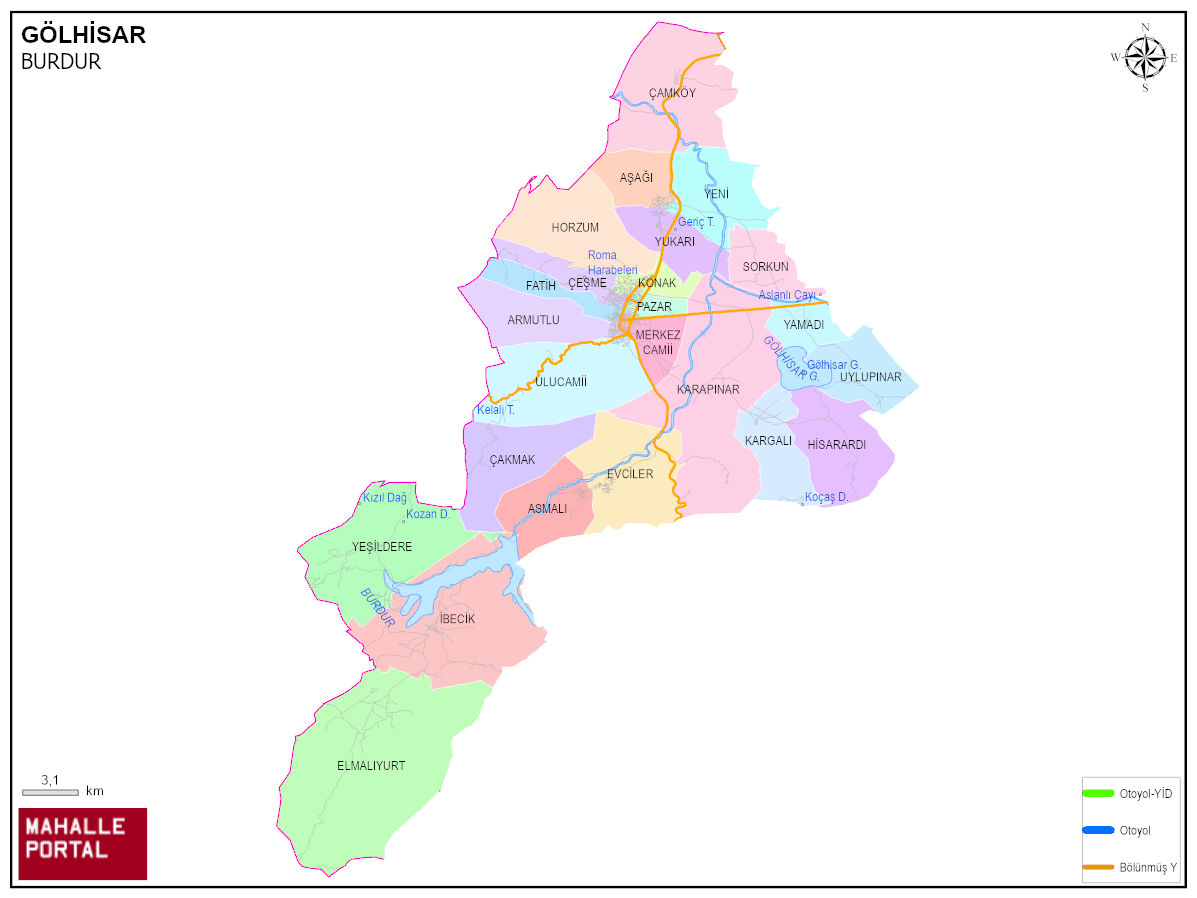 GÖLHİSAR Mahalle Köy Haritası | İlçe Mahalleleri ve Köy Sınırları