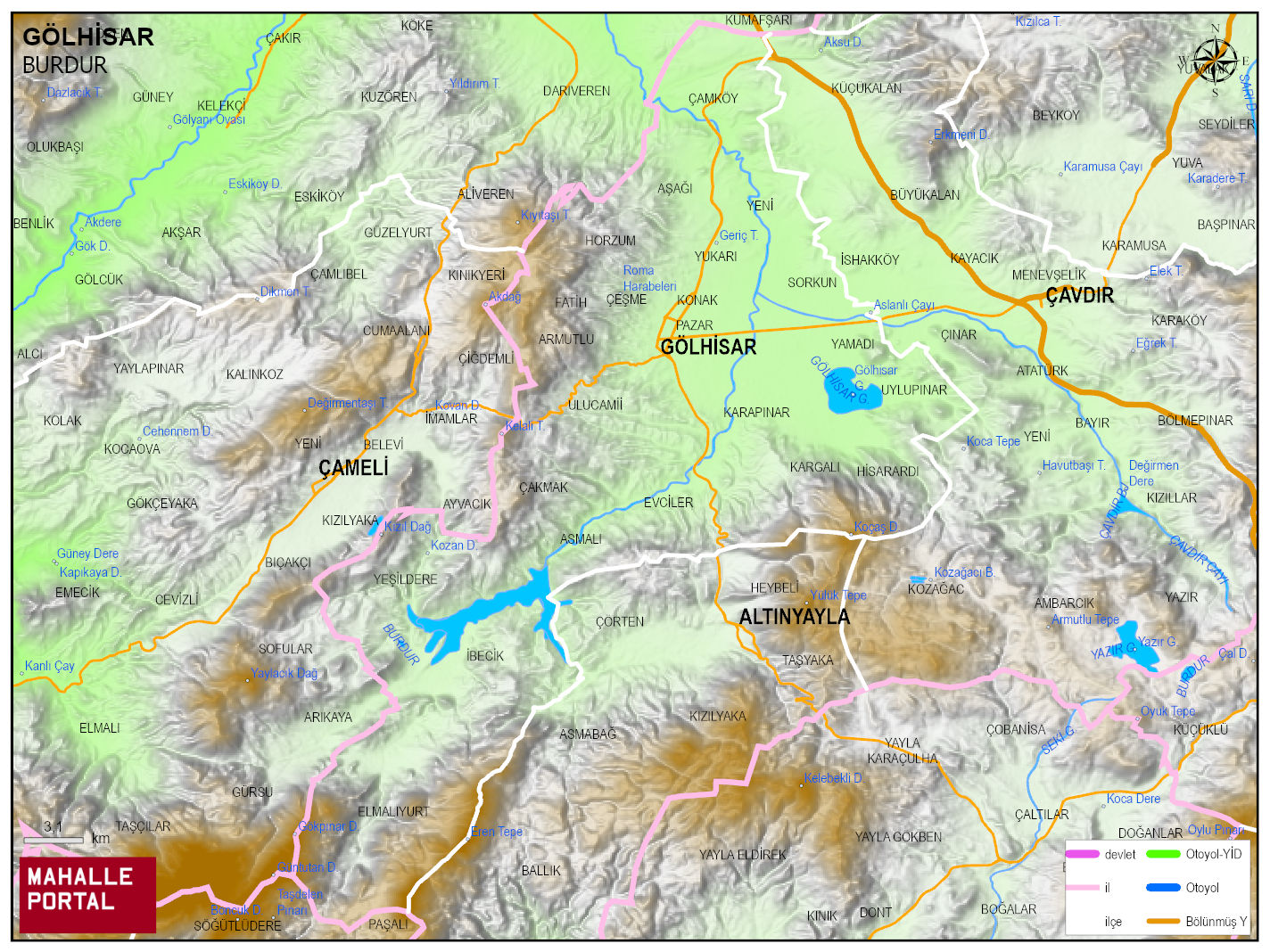 GÖLHİSAR Fiziki Haritası | Dağlar, Ovalar ve Akarsu Bilgileri