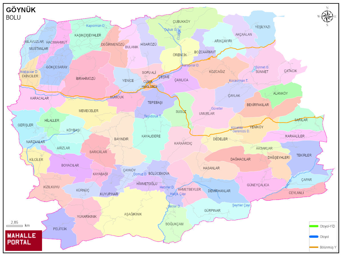 GÖYNÜK Mahalle Köy Haritası | İlçe Mahalleleri ve Köy Sınırları