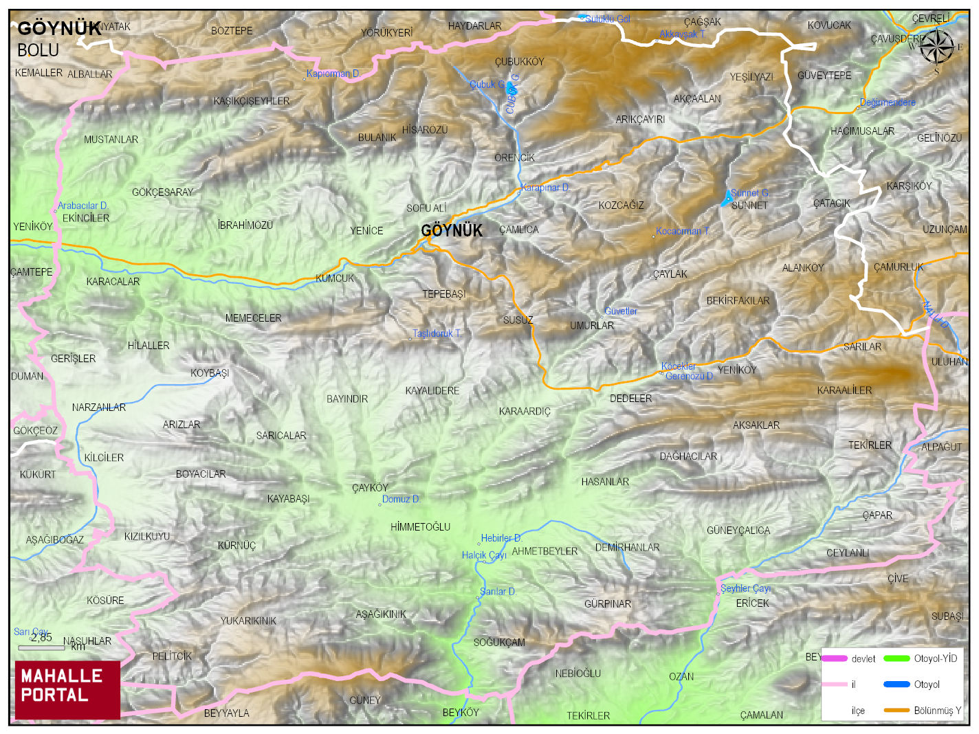 GÖYNÜK, BOLU Dijital Haritası | İnteraktif İlçe ve Mahalle Sınırları