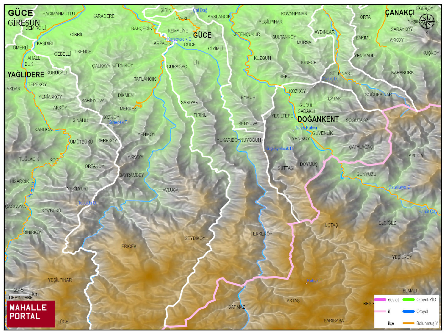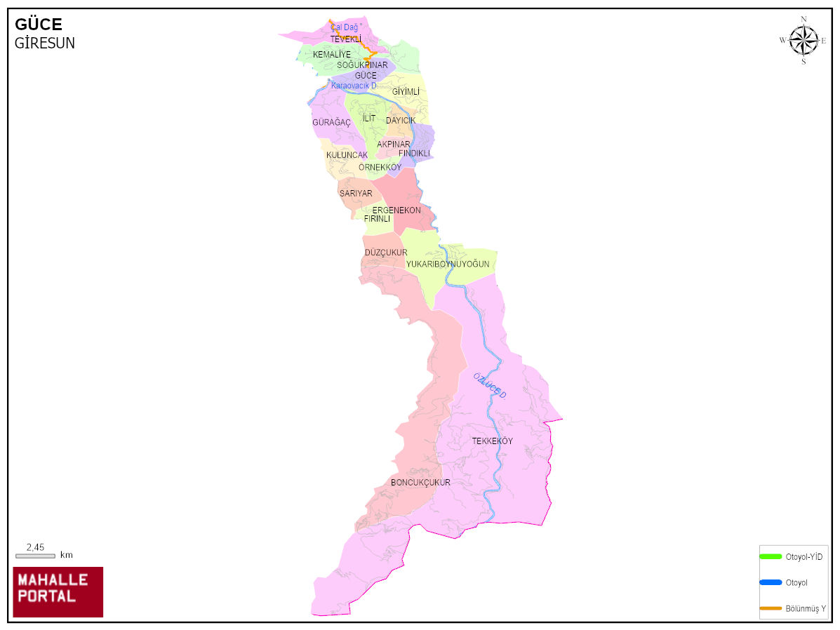 GÜCE, GİRESUN Dijital Haritası | İnteraktif İlçe ve Mahalle Sınırları