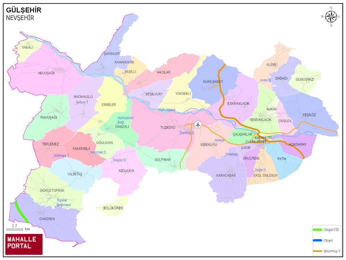GÜLŞEHİR, NEVŞEHİR Dijital Haritası | İnteraktif İlçe ve Mahalle Sınırları