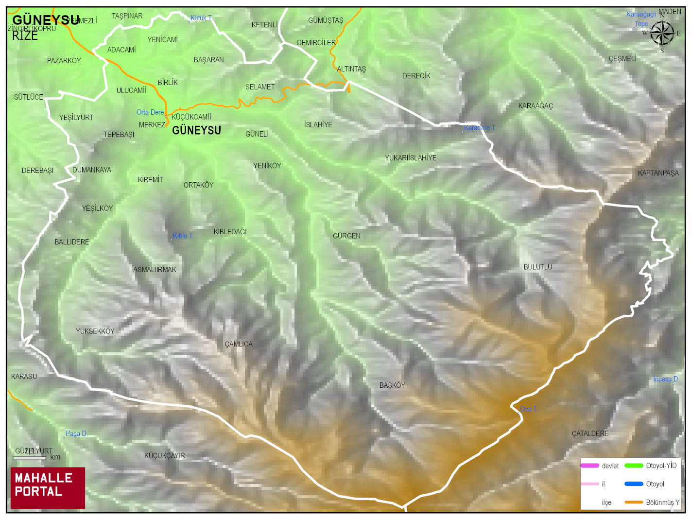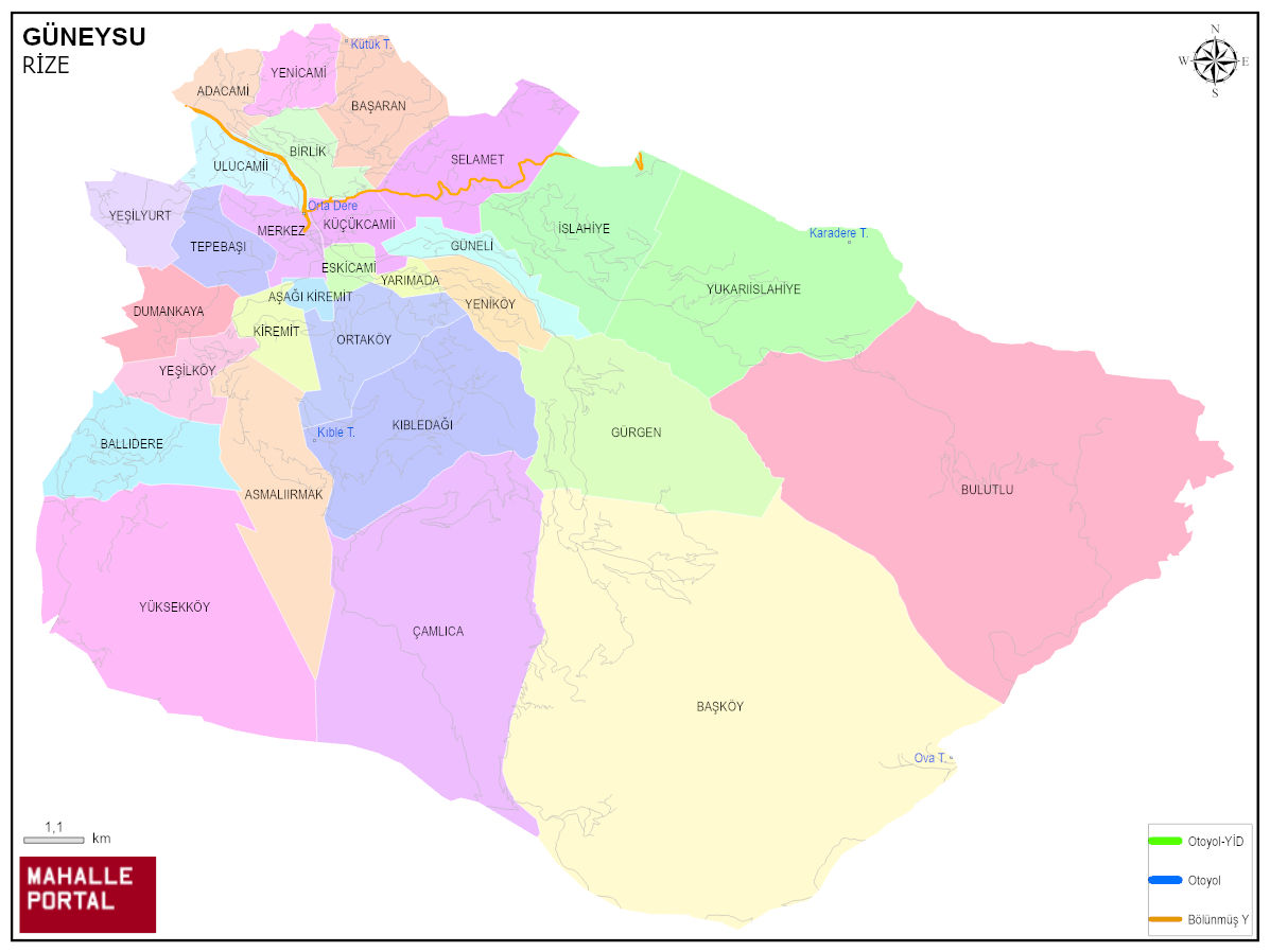 GÜNEYSU, RİZE Dijital Haritası | İnteraktif İlçe ve Mahalle Sınırları