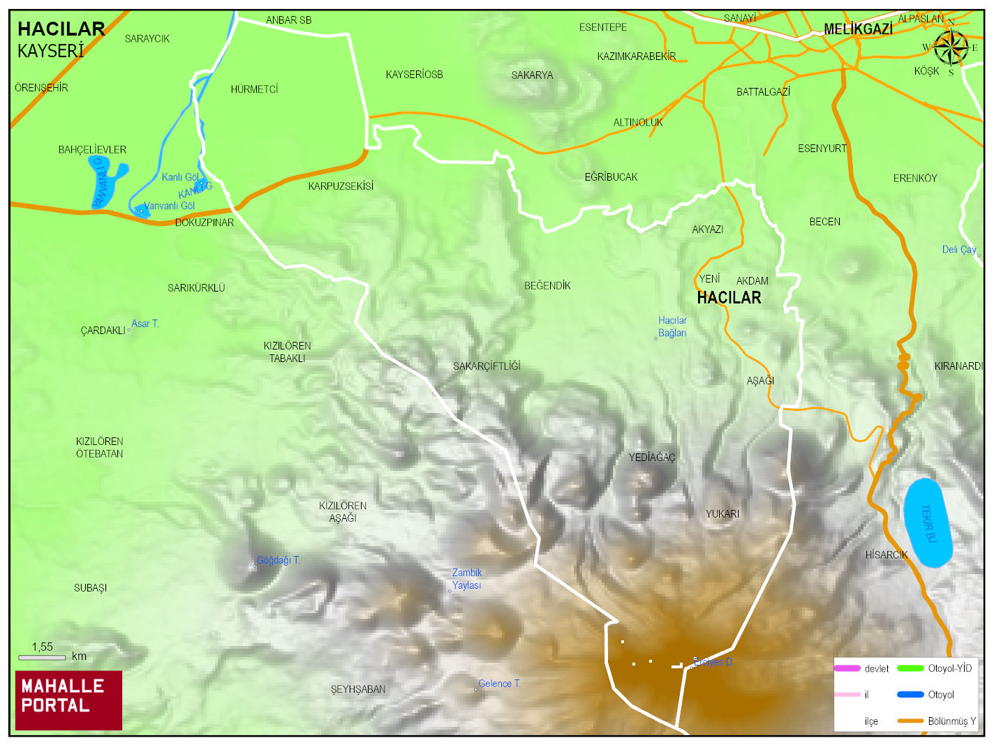 HACILAR, KAYSERİ Dijital Haritası | Uydu Görüntüsü ve Harita Detayları