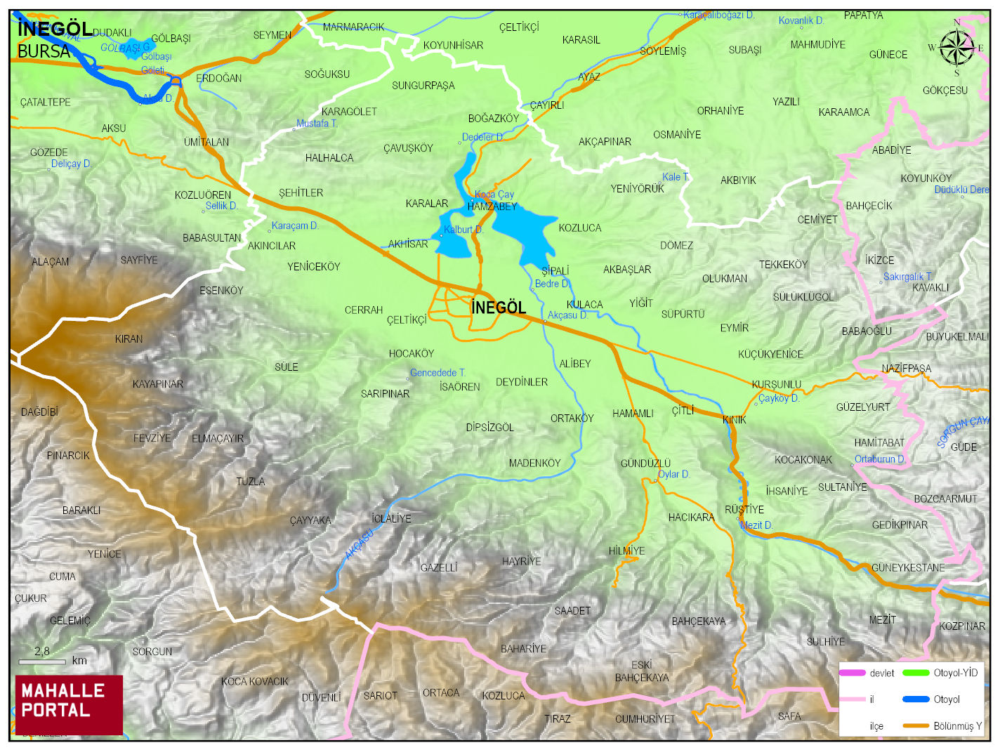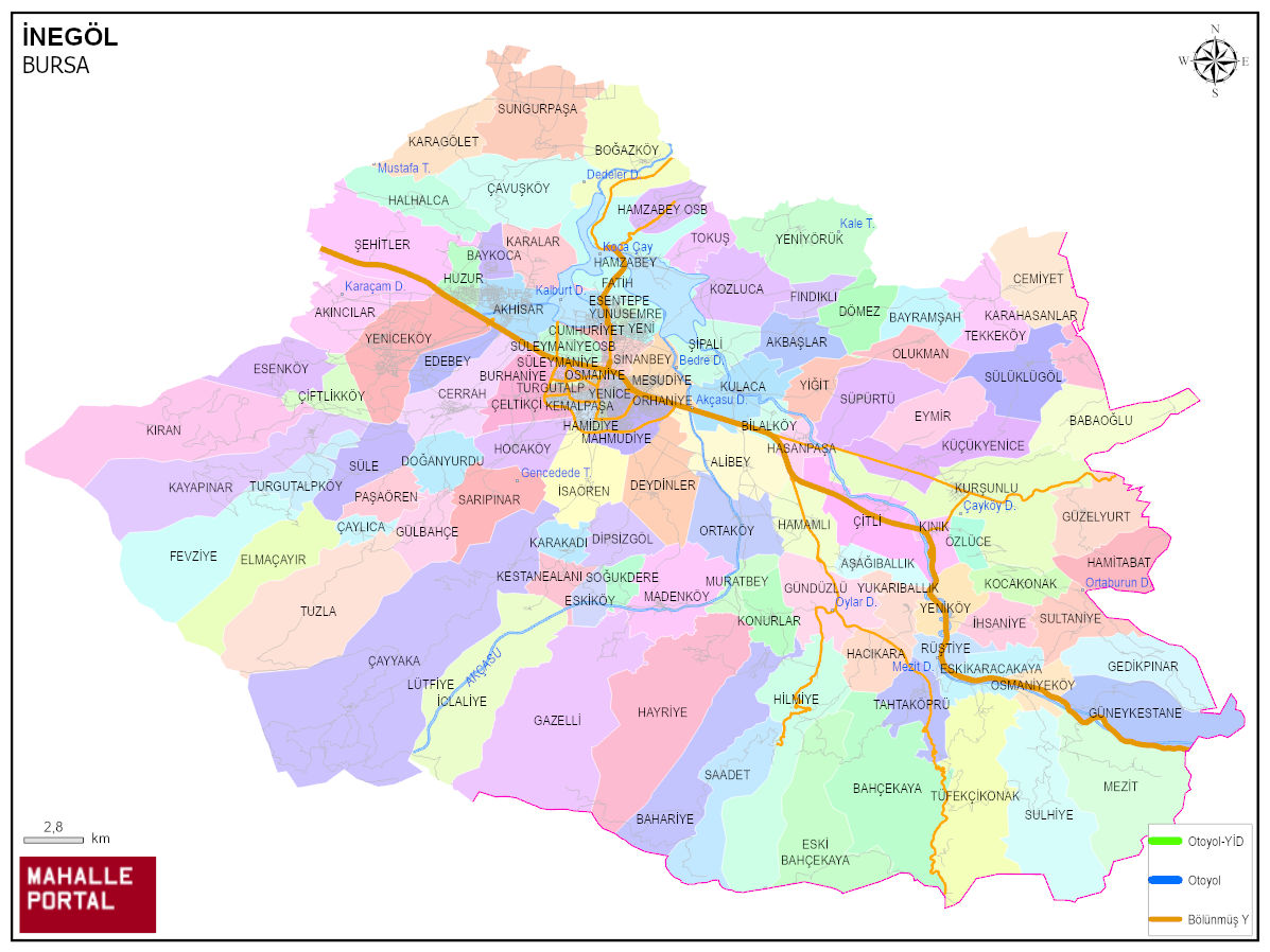 İNEGÖL Mahalle Köy Haritası | İlçedeki Tüm Mahalle ve Köyler