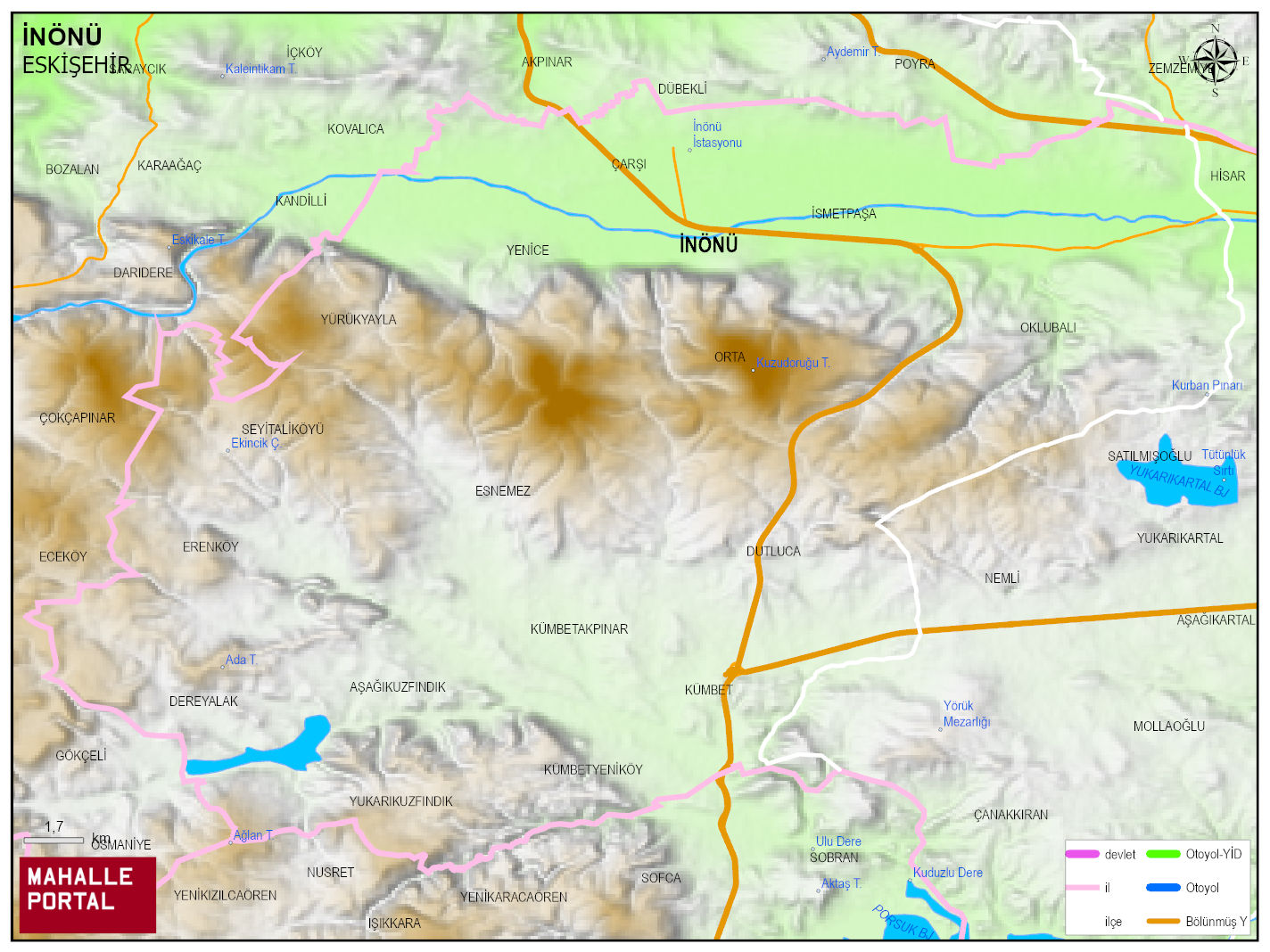 İNÖNÜ Fiziki Haritası | Coğrafi Yapı ve Detaylı İlçe Haritası