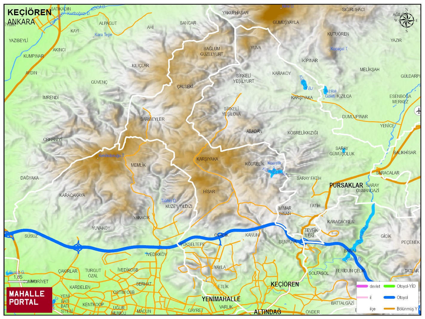 KEÇİÖREN Fiziki Haritası | Yükselti ve Doğa Özellikleri