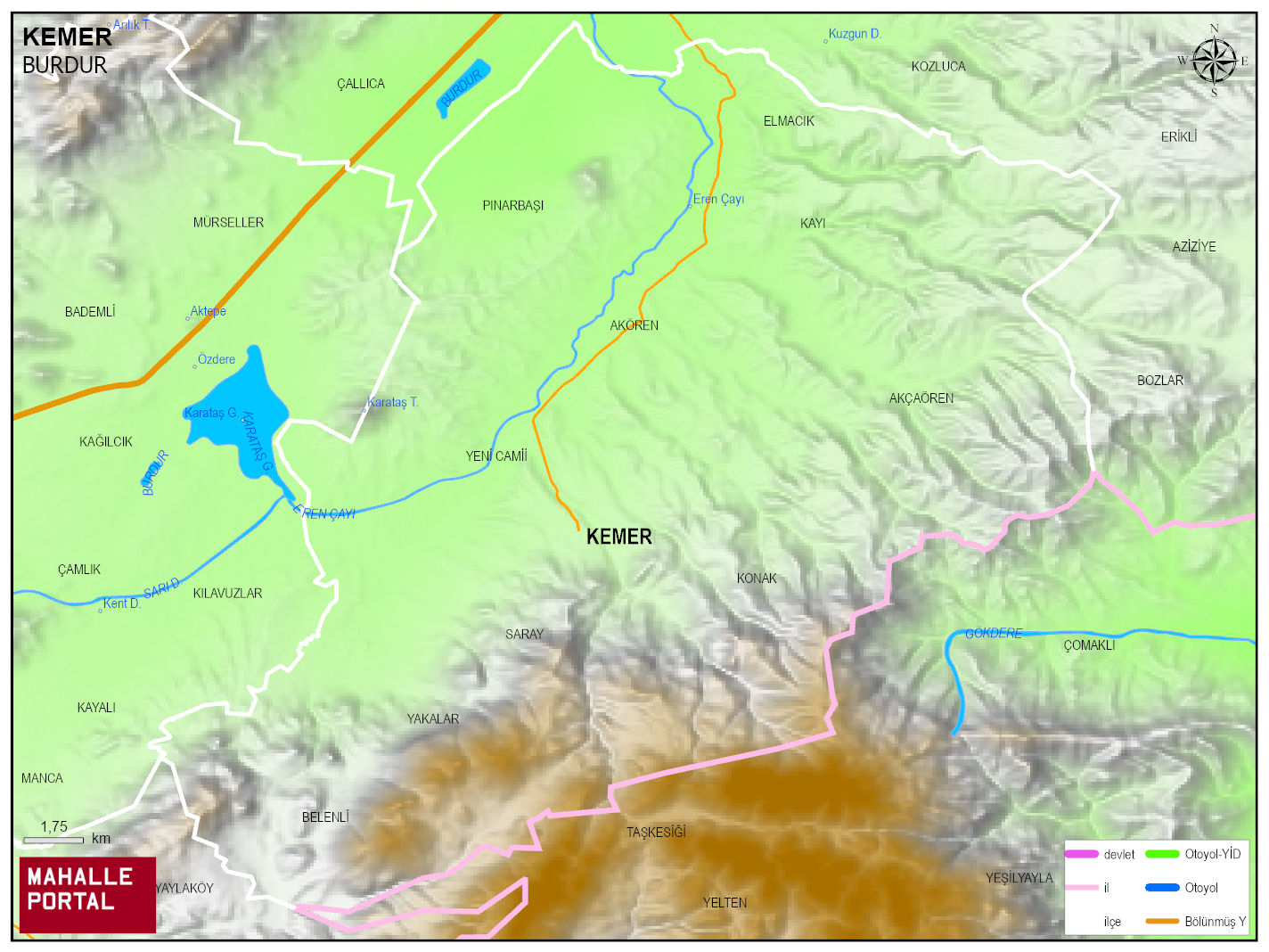 KEMER, BURDUR Dijital Haritası | Uydu Görüntüsü ve Harita Detayları