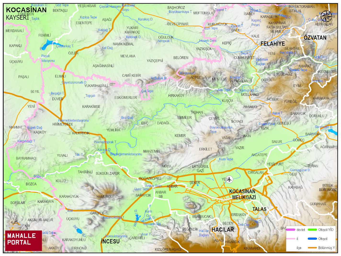 KOCASİNAN Fiziki Haritası | Yükselti ve Doğa Özellikleri