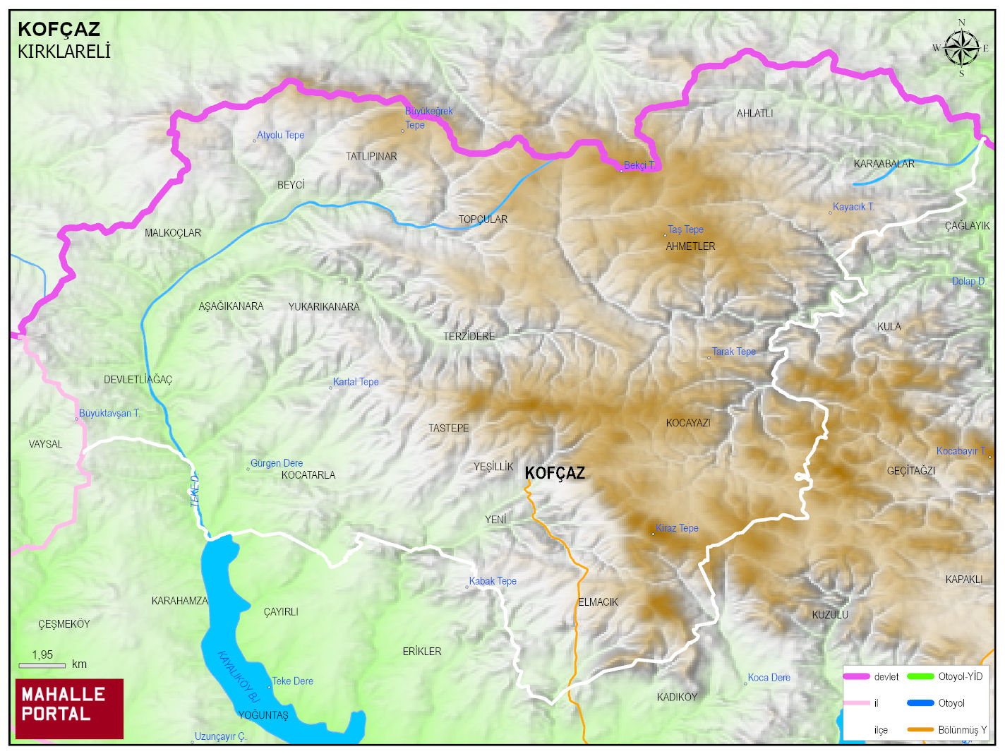 KOFÇAZ Fiziki Haritası | Yükselti ve Doğa Özellikleri