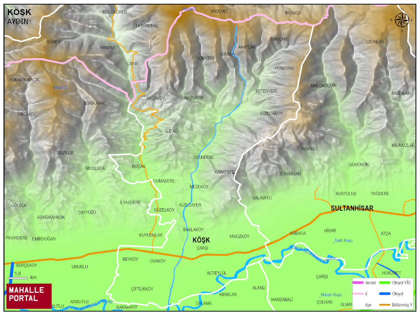 KÖŞK Fiziki Haritası | Yükselti ve Doğa Özellikleri