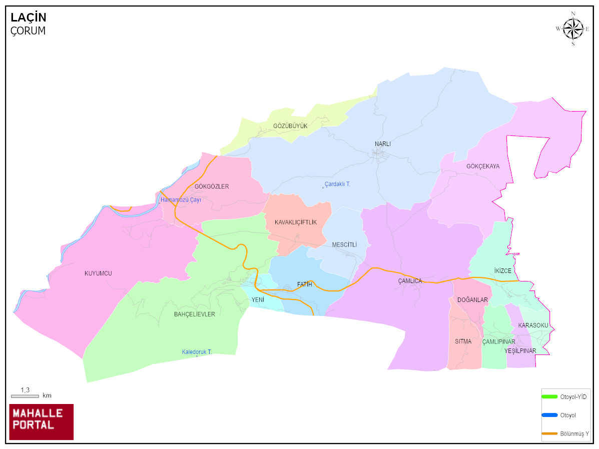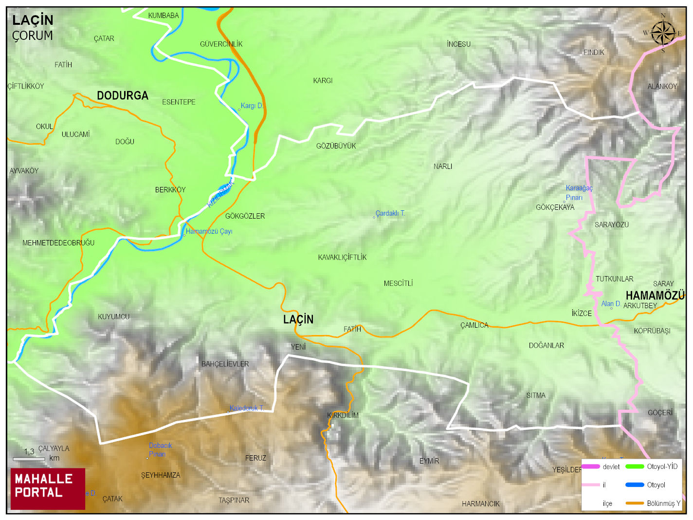 LAÇİN, ÇORUM Dijital Haritası | Uydu Görüntüsü ve Harita Detayları