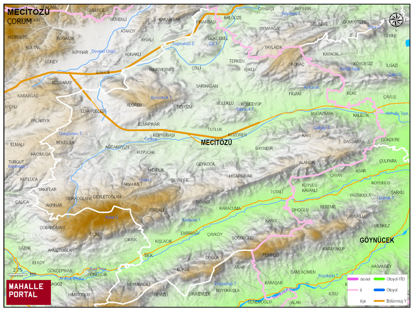 MECİTÖZÜ Fiziki Haritası | Yükselti ve Doğa Özellikleri