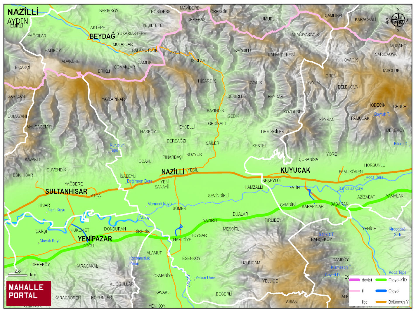 NAZİLLİ Fiziki Haritası | Coğrafi Yapı ve Detaylı İlçe Haritası