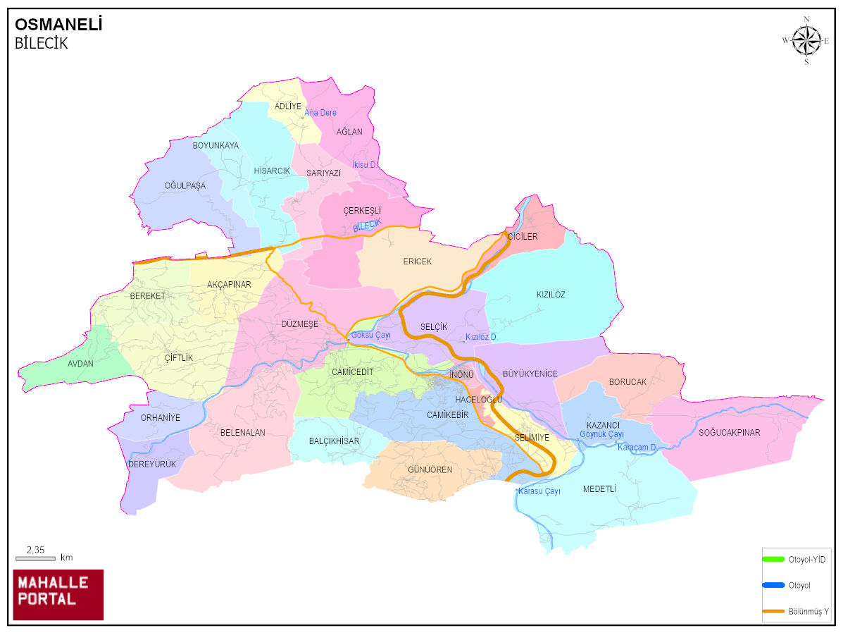 OSMANELİ, BİLECİK Dijital Haritası | Güncel Mahalle ve İlçe Haritası