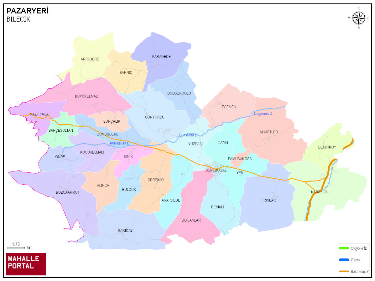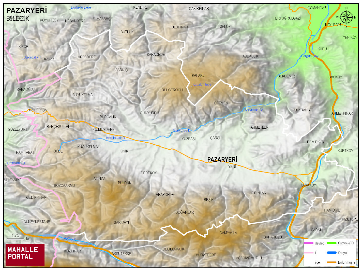 PAZARYERİ, BİLECİK Dijital Haritası | Güncel Mahalle ve İlçe Haritası