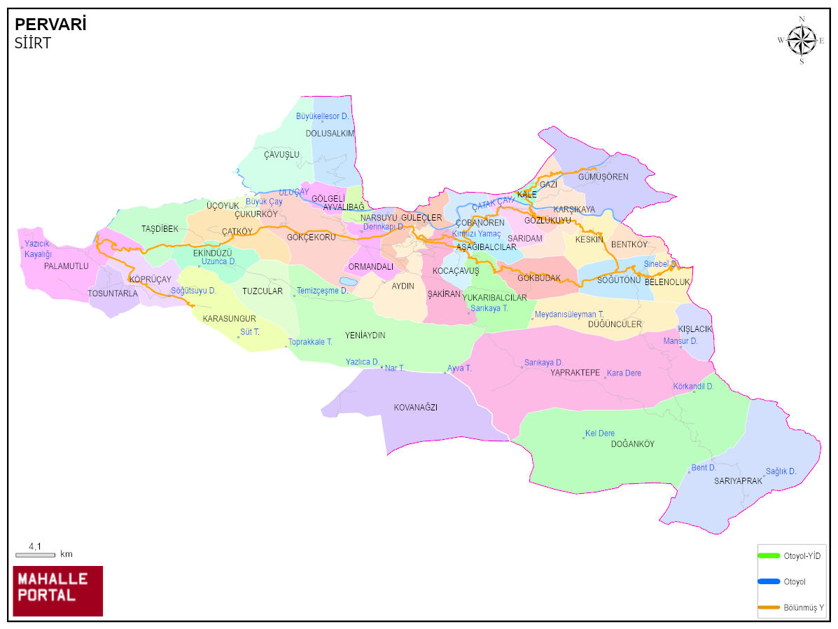PERVARİ, SİİRT Dijital Haritası | Güncel Mahalle ve İlçe Haritası
