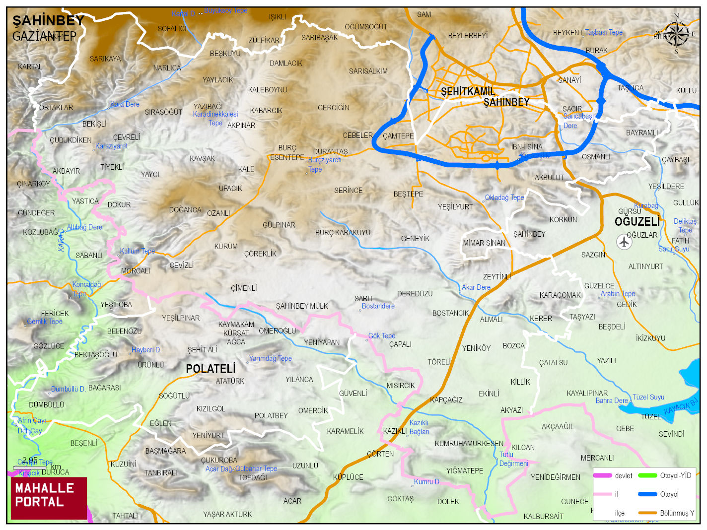 ŞAHİNBEY, GAZİANTEP Dijital Haritası | Güncel Mahalle ve İlçe Haritası