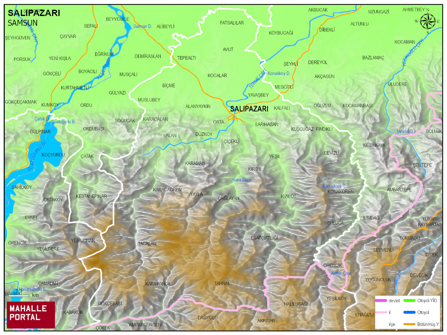 SALIPAZARI Fiziki Haritası | Coğrafi Yapı ve Detaylı İlçe Haritası