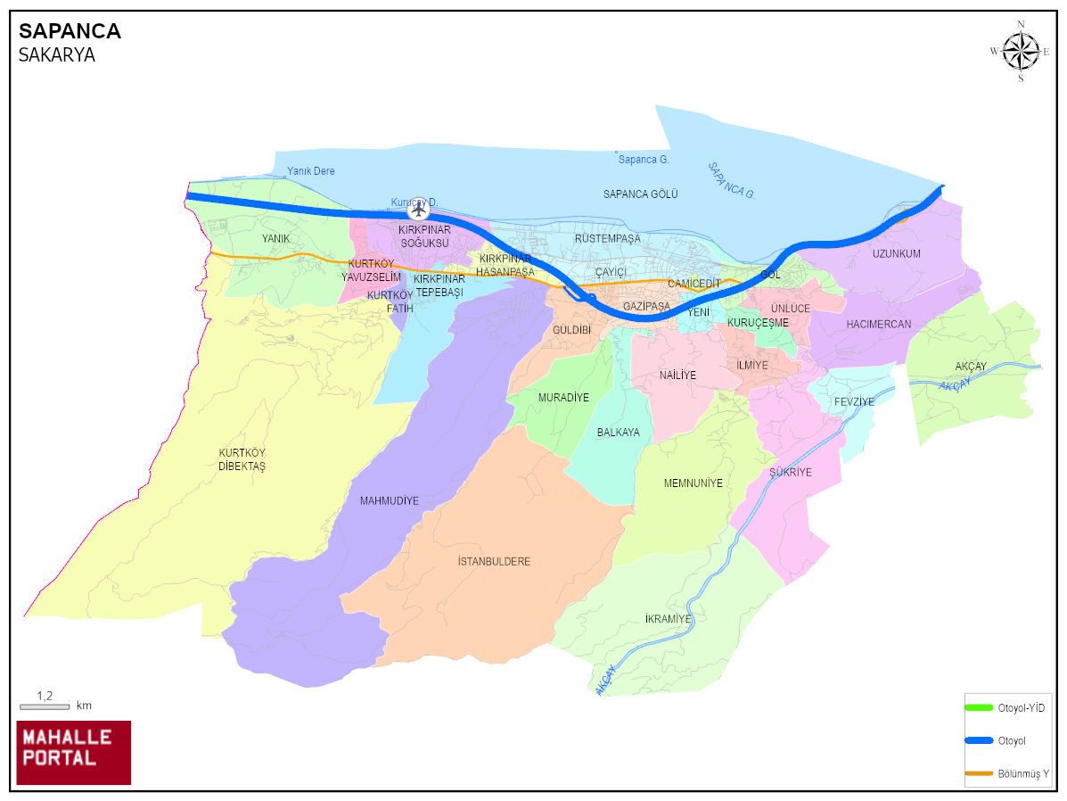 SAPANCA, SAKARYA Dijital Haritası | Güncel Mahalle ve İlçe Haritası